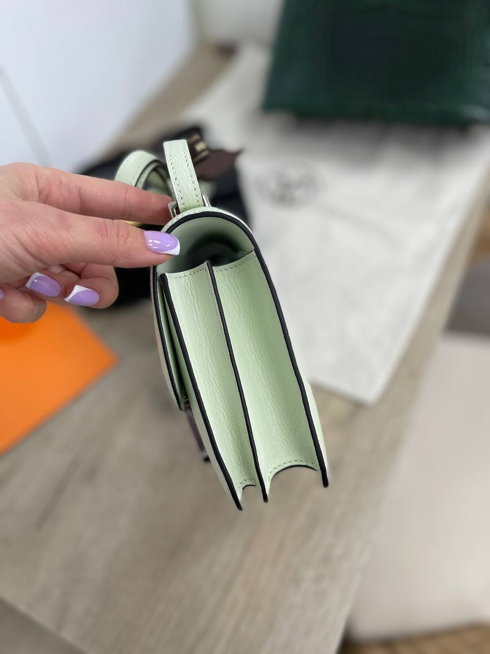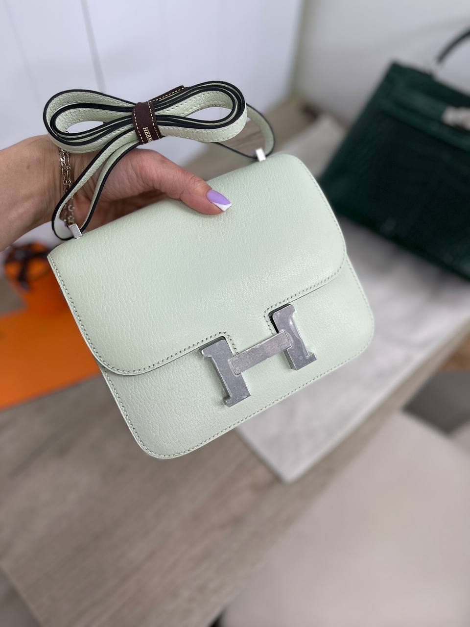 Сумка женская Conctance 18 cm, PHW, Chevre, LUX-87601 представляет собой элегантную модель, выполненную в нежном мятном цвете. Сумка выполнена в минималистичном стиле, подчеркивающем изысканность образа. Идеально подходит для повседневного использования и особых случаев.