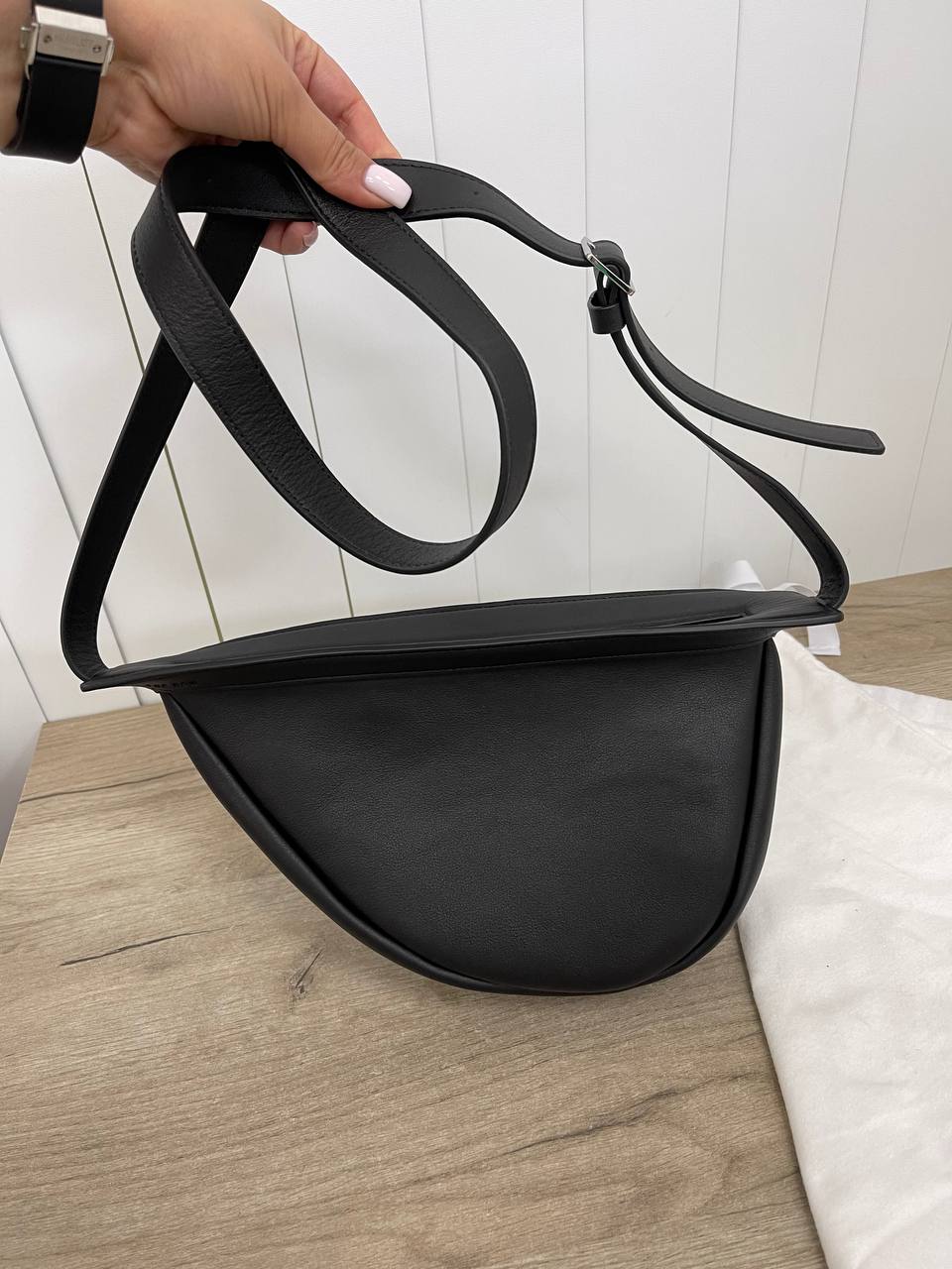 Сумка женская The Row LUX-91047 - это воплощение элегантности и минимализма. Сумка выполнена в классическом черном цвете, имеет гладкую текстуру и утонченный дизайн. Этот аксессуар станет идеальным дополнением к любому образу, подчеркивая стиль и безупречный вкус своей обладательницы.