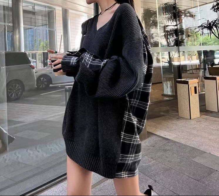 Свитер женский LUX-82493 - стильный элемент гардероба. Свитер выполнен в классическом стиле, с V-образным вырезом. Черный цвет делает его универсальным и подходящим для разных образов. Рукава с клетчатой вставкой добавляют оригинальности.