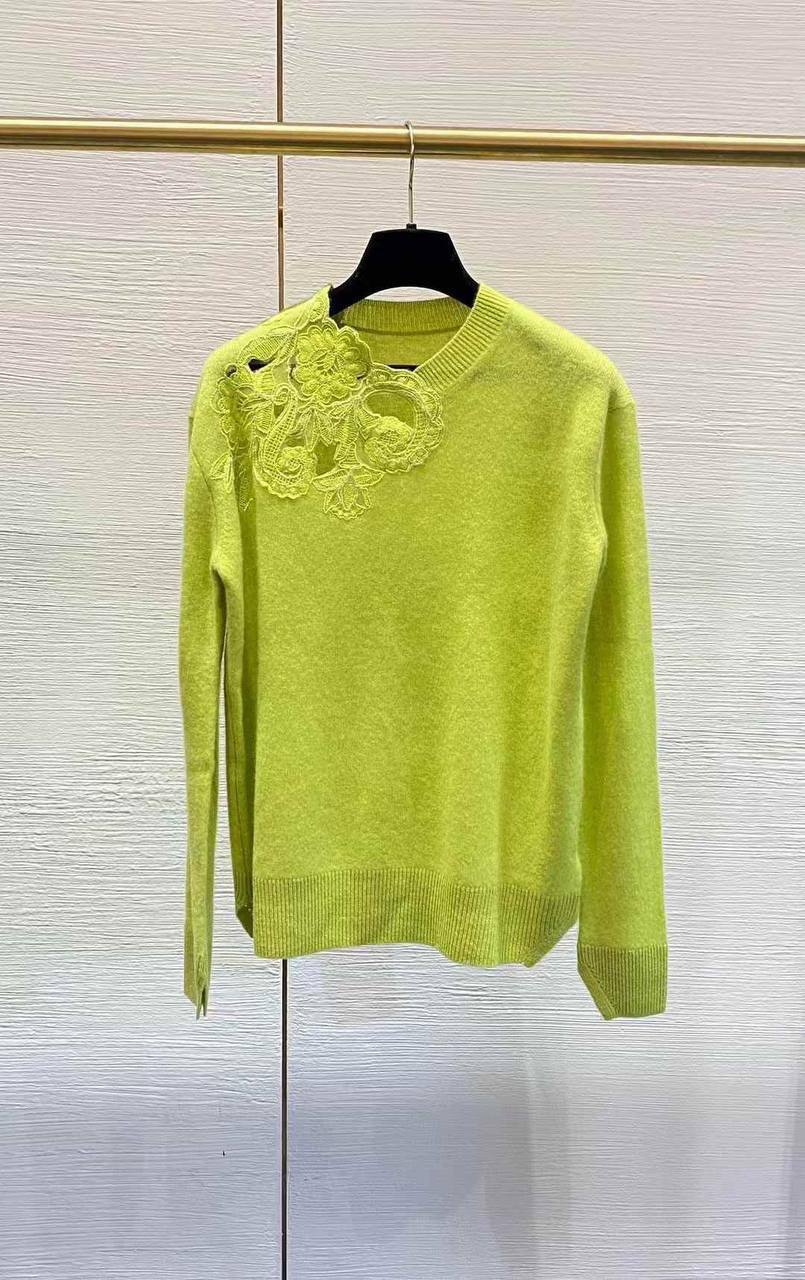 Свитер женский LUX-112364 представляет собой стильный предмет гардероба, выполненный в ярком салатовом цвете. Он сочетает в себе элегантность и современный дизайн, благодаря необычной отделке в виде кружева на плече. Этот свитер идеально подходит для создания модных и комфортных образов.