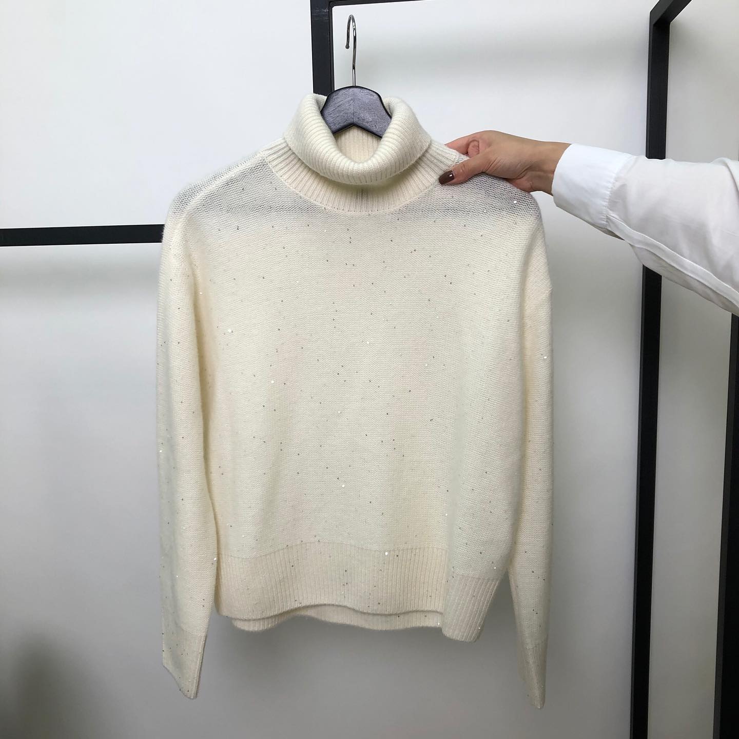 Свитер женский LUX-39465 от LUXE-CRIME – это стильное и элегантное дополнение к вашему гардеробу. Модель выполнена в классическом стиле с высоким горлом, что придает ей изысканность. Нежное мерцание мелких пайеток, равномерно распределенных по всей поверхности, добавляет изделию особую привлекательность и праздничность. Свитер идеально подойдет как для повседневных, так и для вечерних образов.