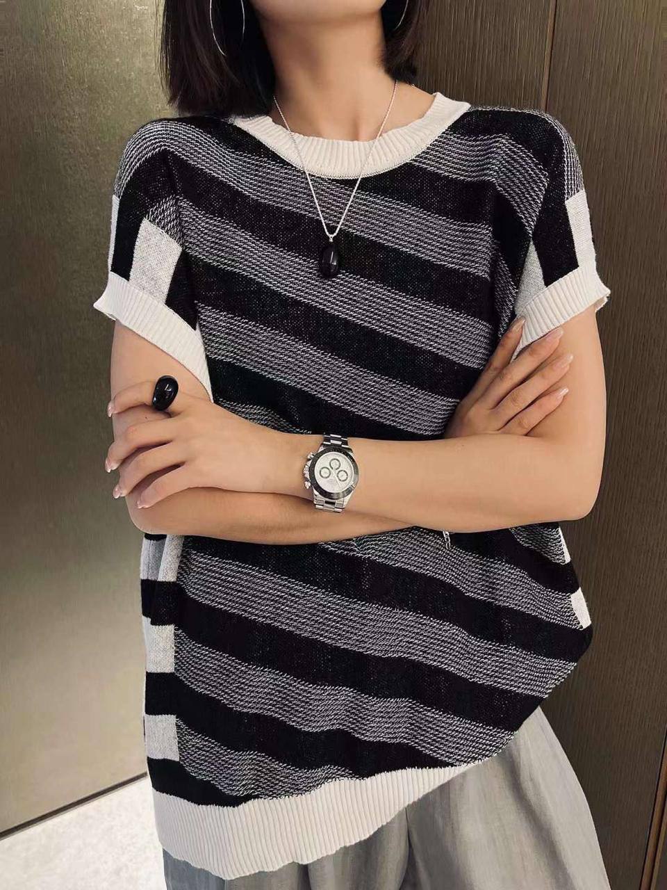Футболка The Row LUX-104230 — это стильный предмет гардероба с узнаваемым дизайном. Футболка выполнена в черно-белую полоску, с короткими рукавами и круглым вырезом. Данная модель может подойти для повседневной носки, а также для создания более элегантных образов.