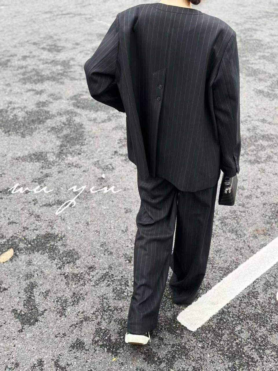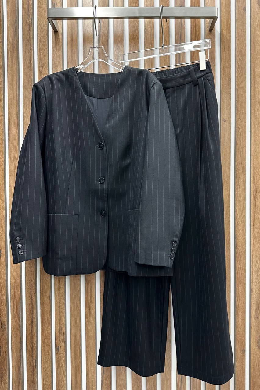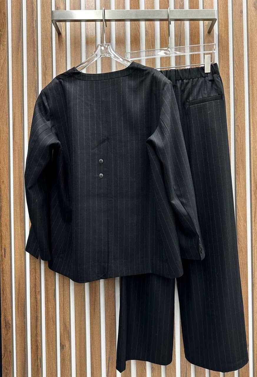 Костюм женский The Row LUX-103007 — это элегантный ансамбль в классическом стиле. Чёрный костюм в полоску состоит из пиджака свободного кроя и брюк прямого силуэта. Прекрасный выбор для создания стильного и уверенного образа.