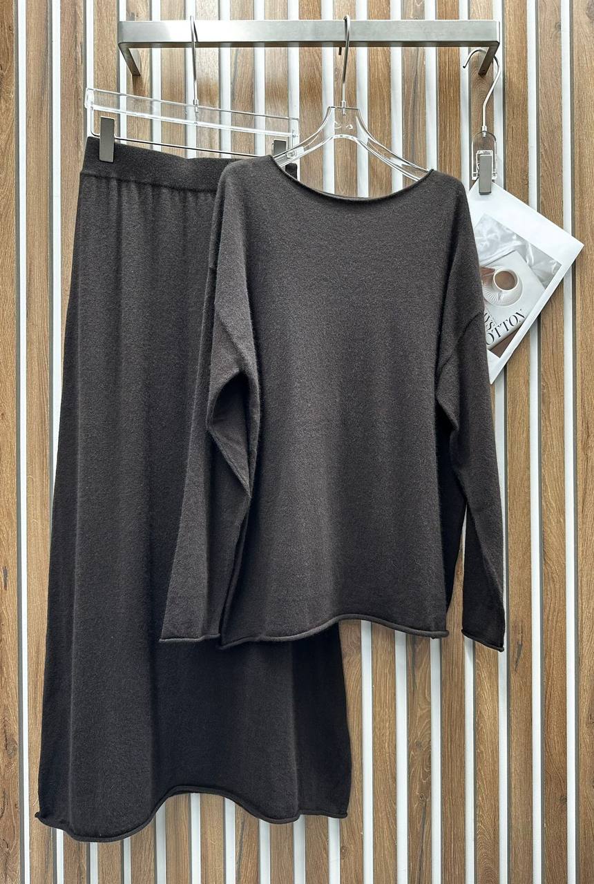 Костюм женский The Row LUX-112023 представляет собой стильный комплект, состоящий из свитера и юбки. Темно-коричневый цвет костюма делает его универсальным для различных образов. Мягкая текстура ткани добавляет комфорта и элегантности. Идеально подойдет для повседневной носки, работы или особых случаев.