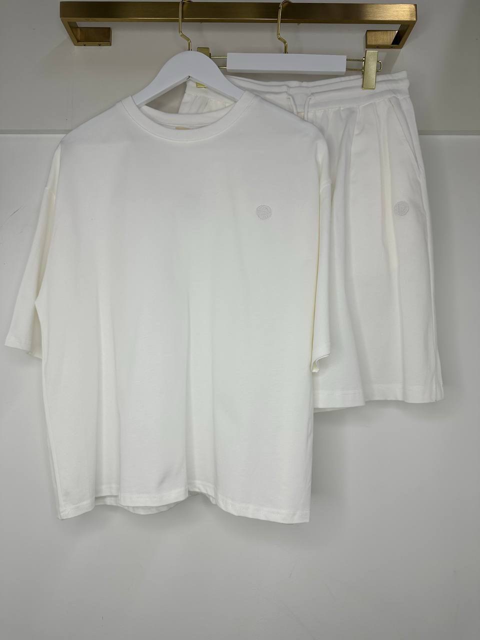 Костюм женский The Row LUX-121005 – стильный комплект в минималистичном дизайне. Этот костюм, состоящий из футболки оверсайз и шорт, идеально подходит для создания комфортного и модного образа.