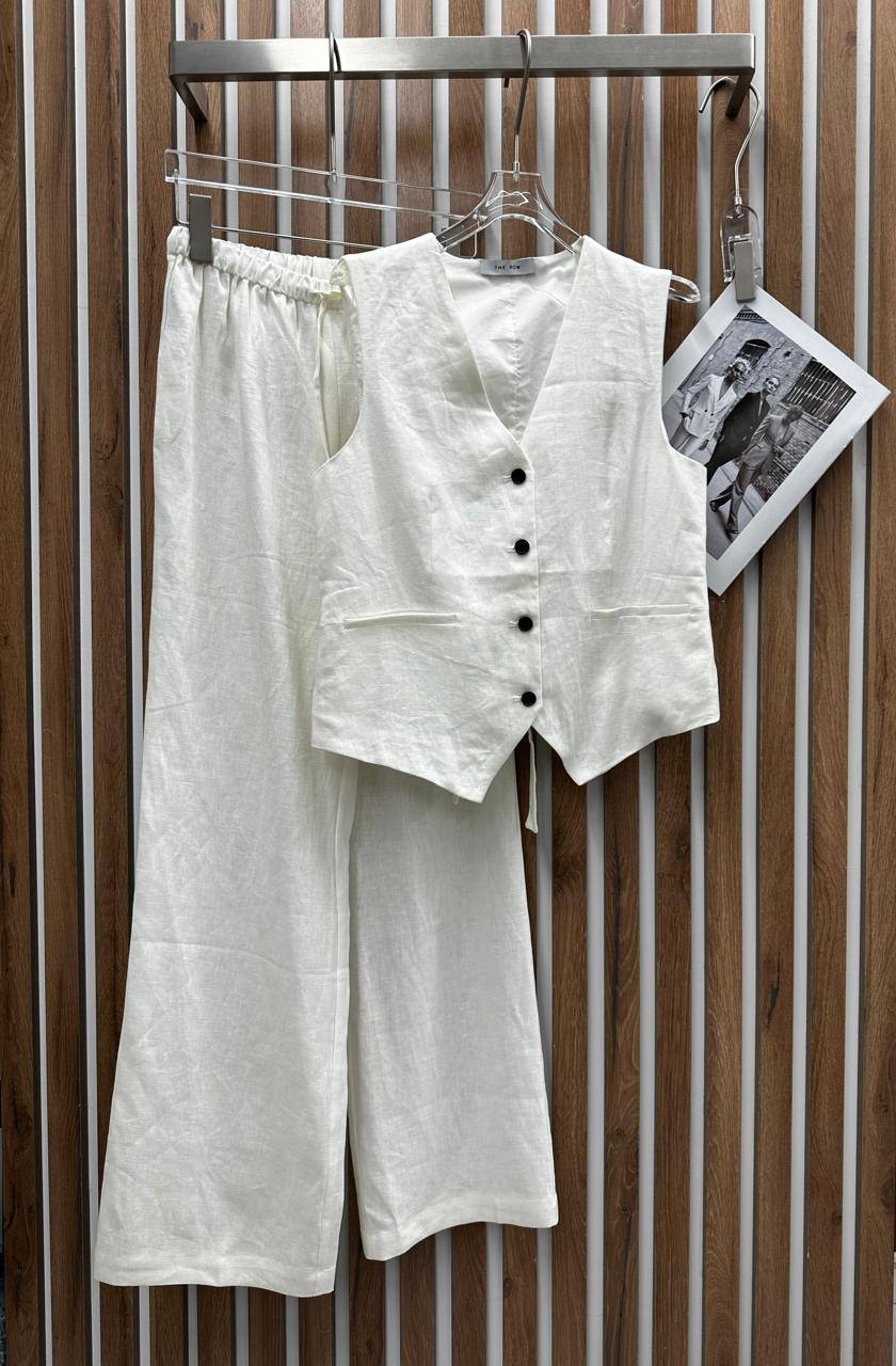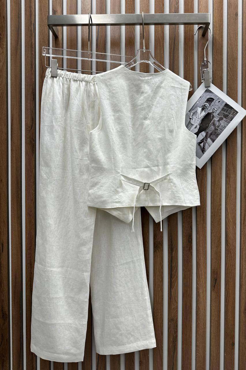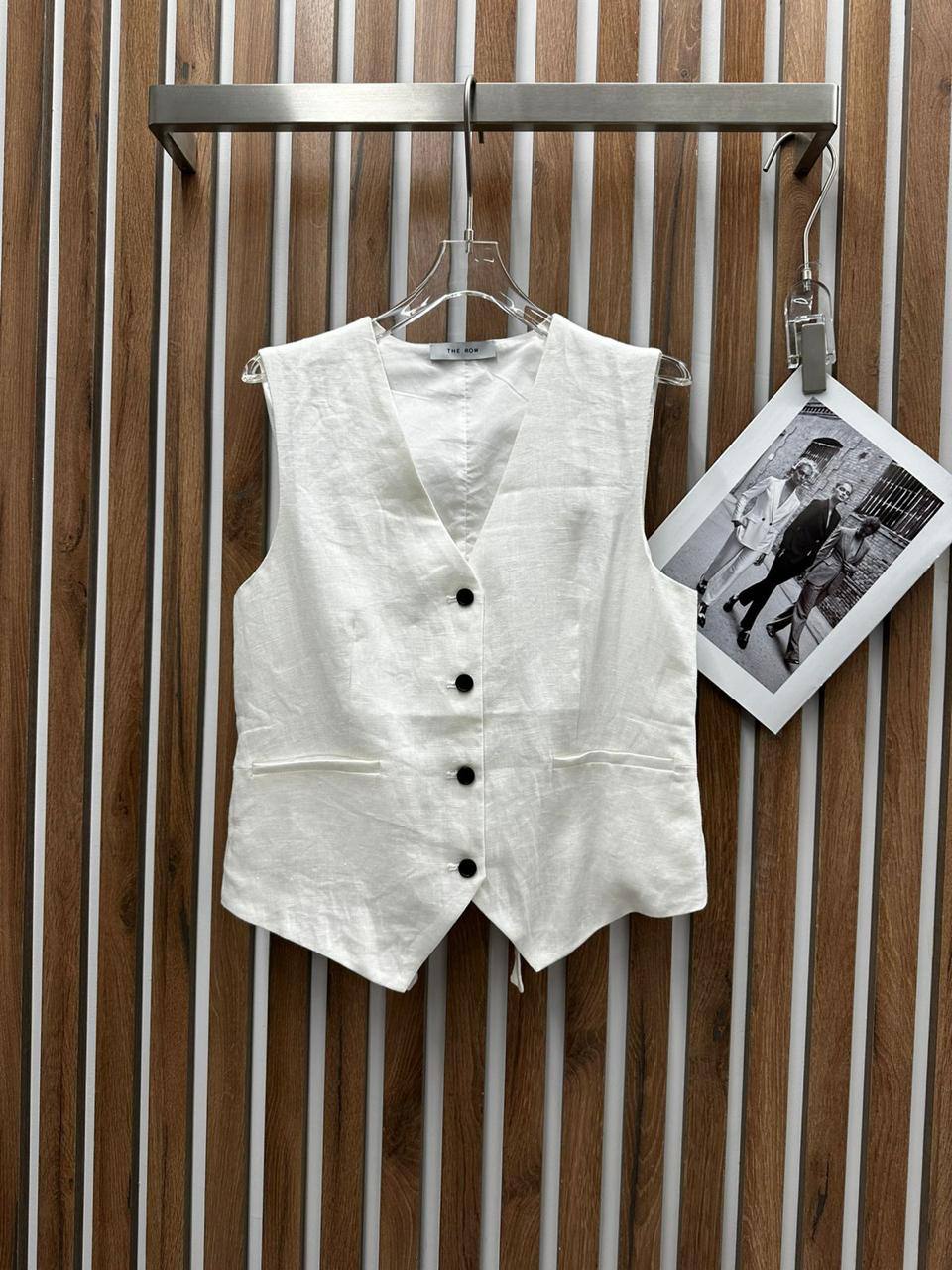 Костюм женский The Row LUX-108272 представляет собой элегантный комплект, состоящий из жилета и брюк. Комплект выполнен в классическом стиле, сочетающем минимализм и изысканность. Белый цвет костюма создает ощущение свежести и легкости, делая его идеальным для различных поводов.