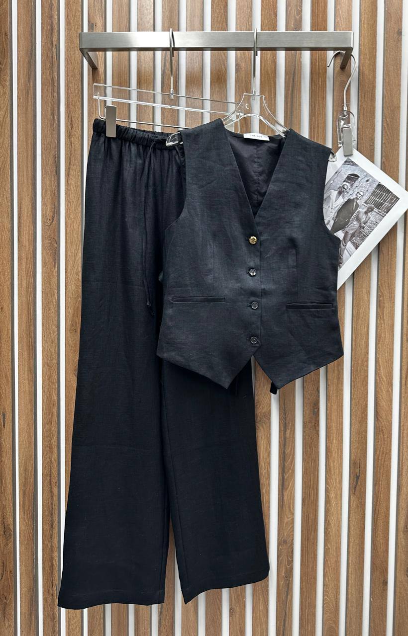 Костюм женский The Row LUX-108273 представляет собой элегантный комплект, который сочетает в себе классический стиль и современный крой. Костюм выполнен в черном цвете, что делает его универсальным для различных образов. Он отлично подойдет как для деловых встреч, так и для повседневной носки.
