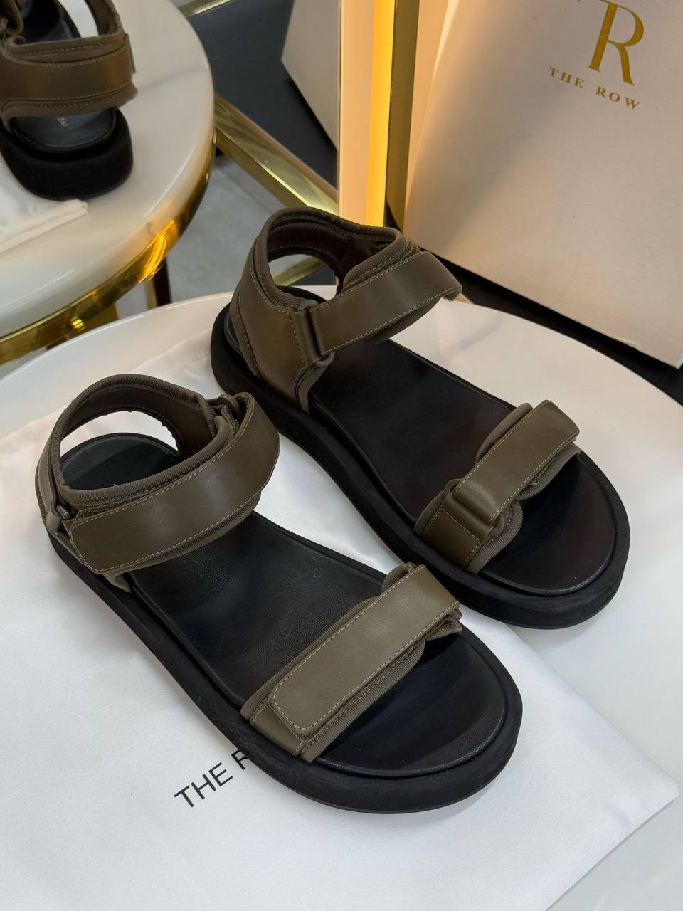 Сандалии The Row LUX-117891 — это стильные сандалии, которые сочетают в себе современный дизайн и комфорт. Обувь выполнена в хаки цвете, с черной подошвой, что делает их универсальными и подходящими для разных образов. Сандалии отлично подойдут для повседневной носки, обеспечивая комфорт в течение всего дня.