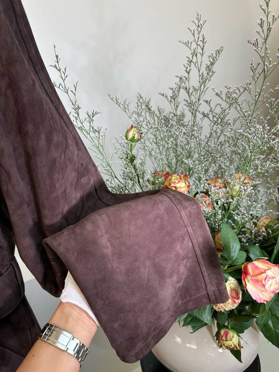 Замшевый плащ The Row LUX-112026 — это элегантное решение для создания утонченного образа. Плащ выполнен в классическом стиле, идеально подходит для осени и весны. Темно-коричневый цвет делает его универсальным, позволяя сочетать с различными элементами гардероба.