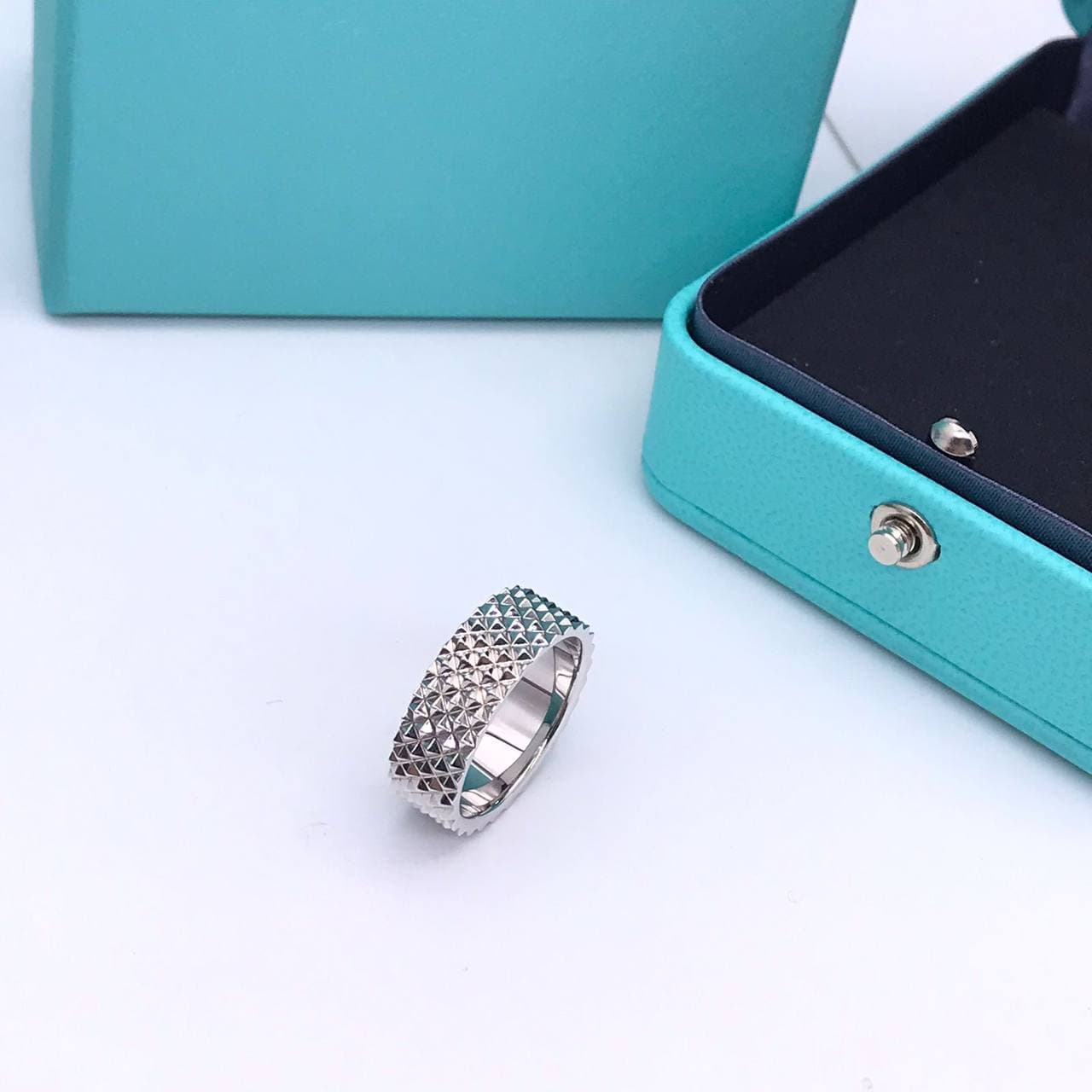 Кольцо Tiffany&Co LUX-60471 – это изысканное ювелирное изделие, выполненное в современном стиле. Его дизайн отличается четкими геометрическими формами и текстурированной поверхностью, создающей игру света и тени. Это универсальное кольцо, которое прекрасно дополнит как повседневный, так и вечерний образ, добавляя элегантности и утонченности.