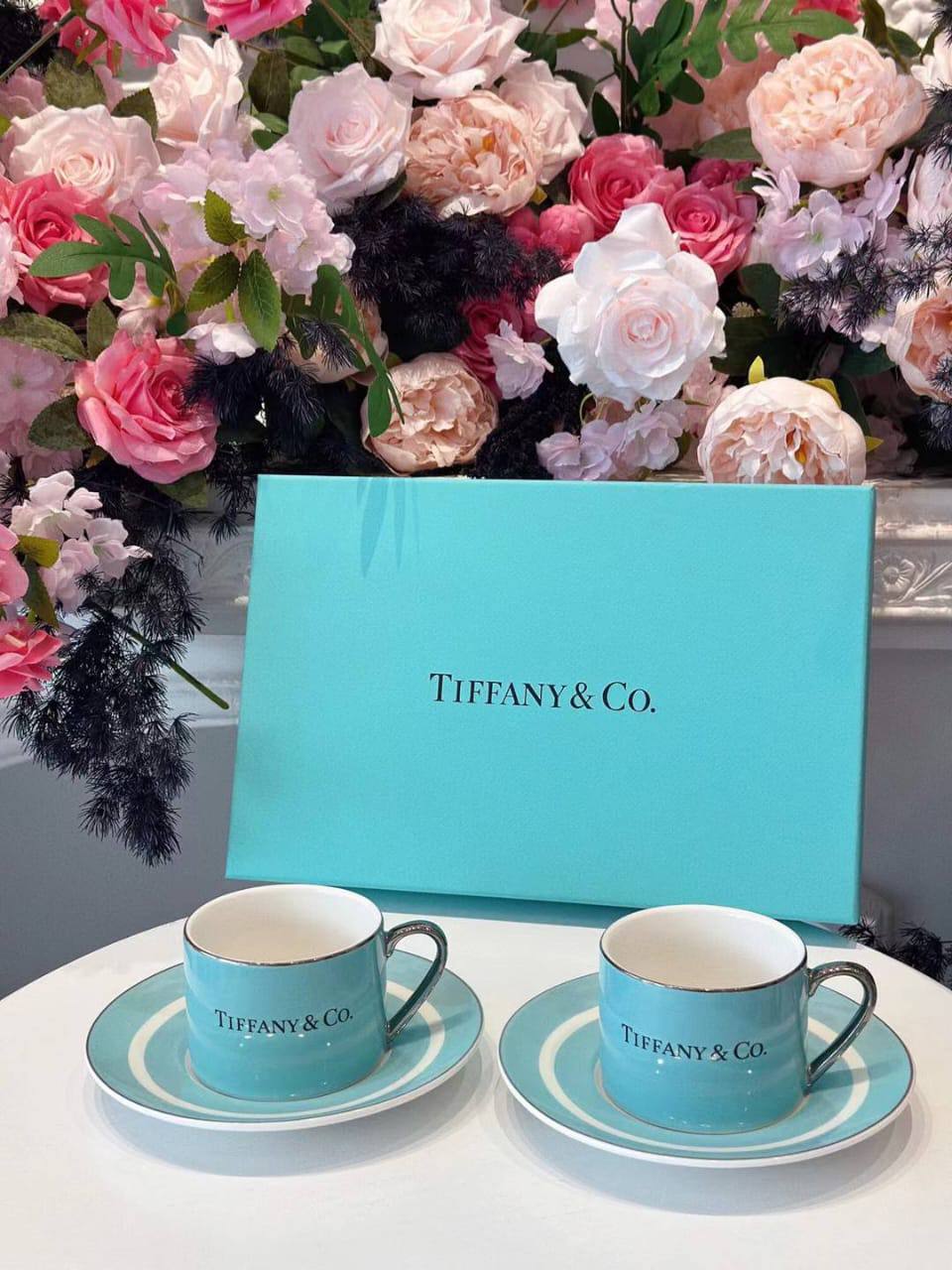 На фотографии изображен набор посуды от Tiffany&Co. Этот элегантный набор выполнен в фирменном бирюзовом цвете и отличается изысканным дизайном.