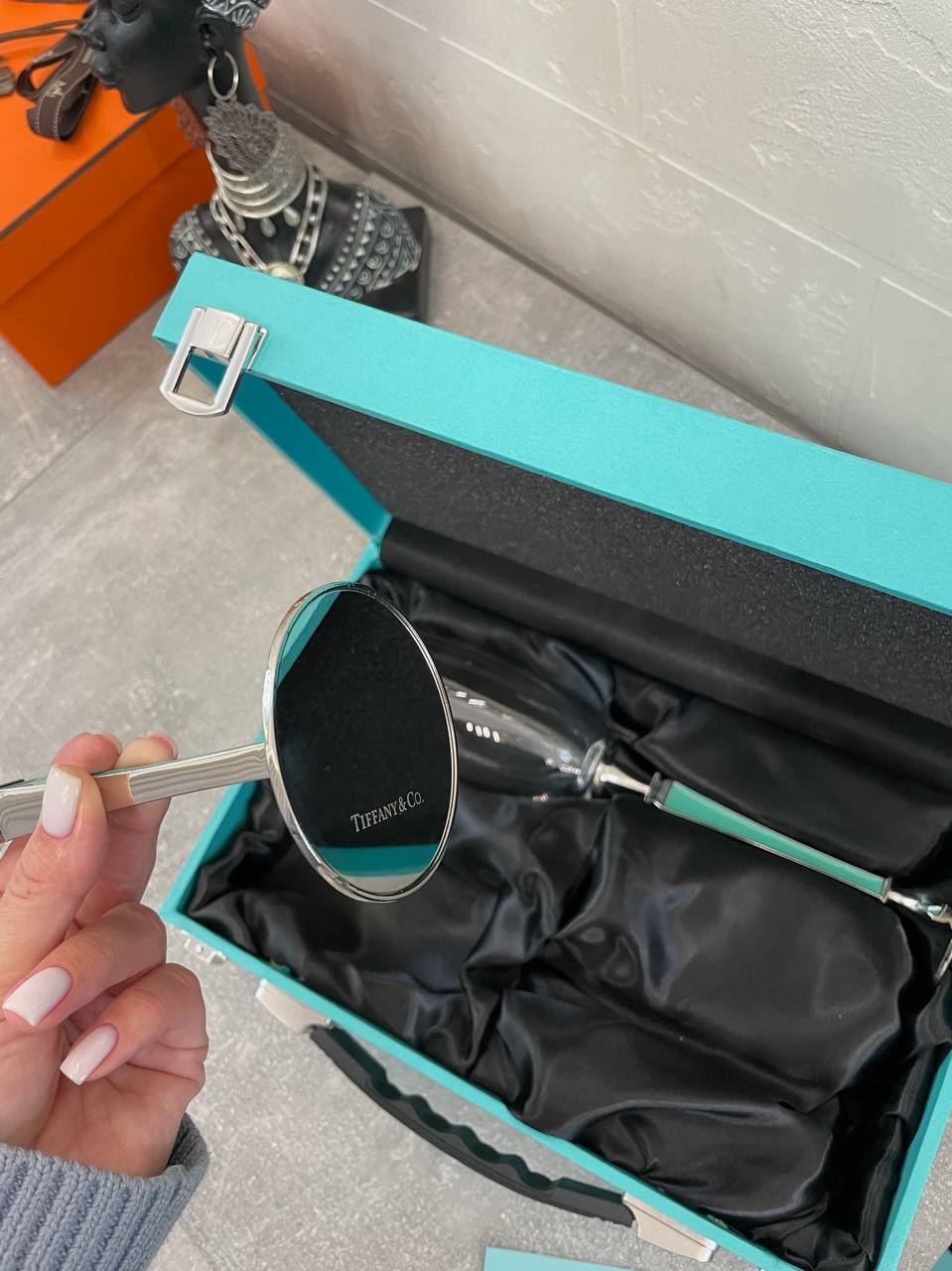 Пара фужеров Tiffany&Co LUX-99327 представляет собой элегантный набор для сервировки стола, сочетающий в себе изысканность и стиль. Прозрачные фужеры с серебристыми элементами и ручками мятного цвета упакованы в фирменный бирюзовый кейс, создавая атмосферу роскоши. Идеально подойдут для особых случаев и станут прекрасным подарком.