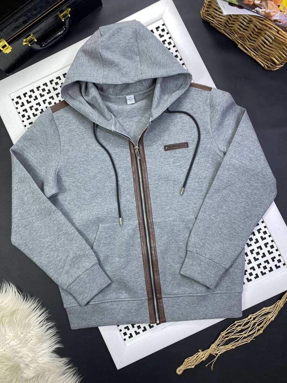 Толстовка LUX-57076 – это стильная и комфортная модель с капюшоном, выполненная в современном дизайне. Серый цвет и минималистичный крой делают ее универсальной основой для создания множества образов. Декоративные вставки из искусственной кожи по молнии и на плечах придают толстовке оригинальность и элегантность.