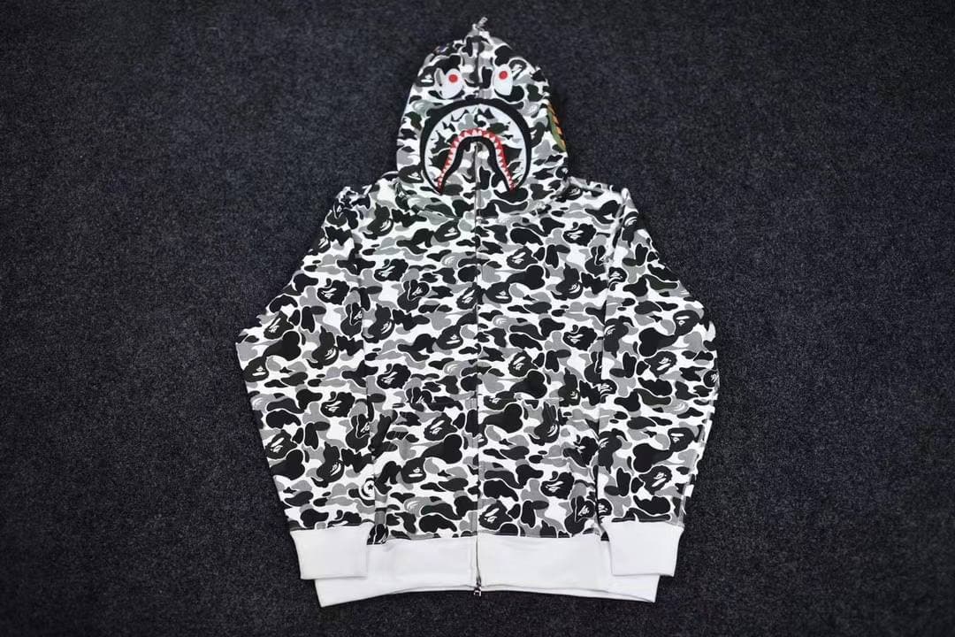 Толстовка LUX-59165 от BAPE – это яркий представитель уличного стиля, сочетающий в себе узнаваемый камуфляжный принт и провокационный дизайн капюшона в виде акулы. Эта модель идеально подойдет для создания дерзких и запоминающихся образов.