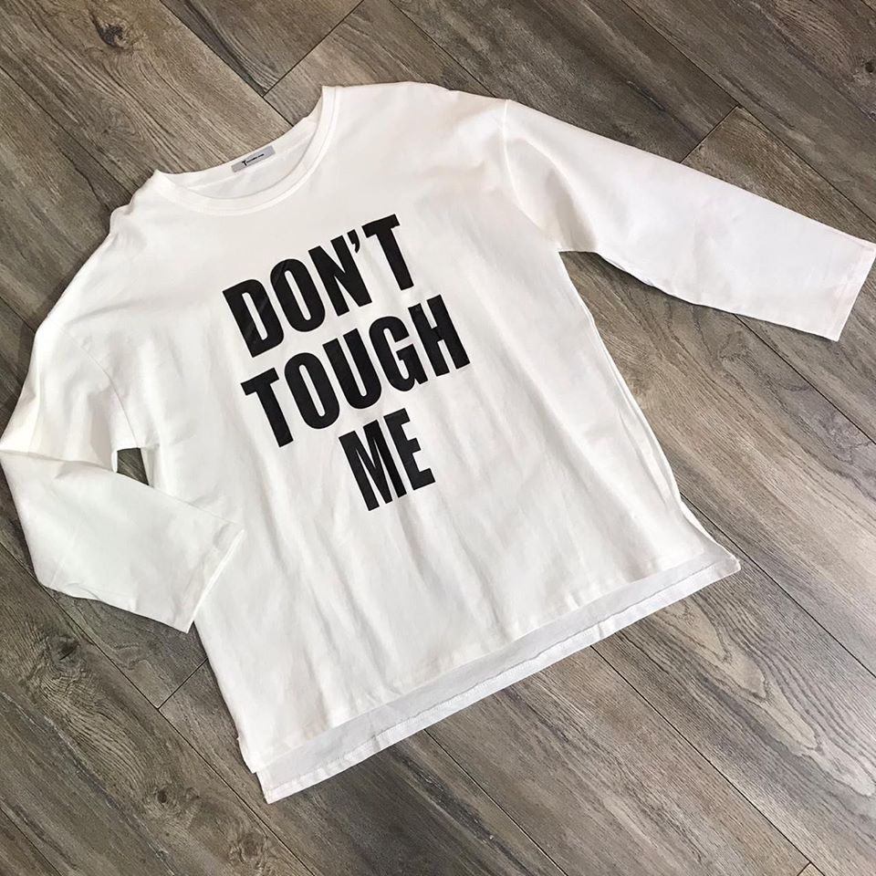 Толстовка женская LUX-29251 от бренда Luxe Crime — это стильная и комфортная вещь свободного кроя с оригинальным принтом "DON`T TOUGH ME". Модель отлично подойдет для создания повседневных образов в стиле casual.