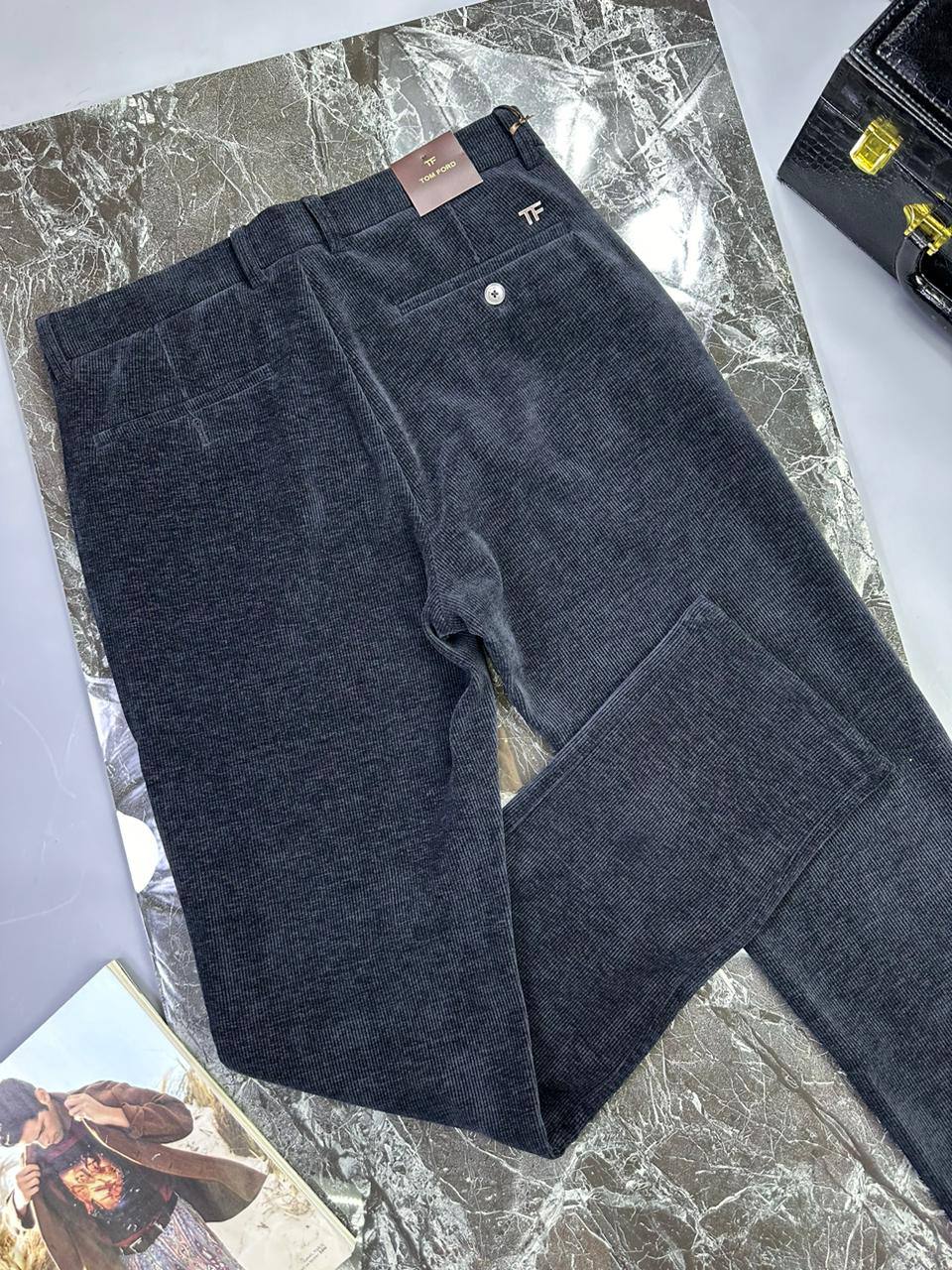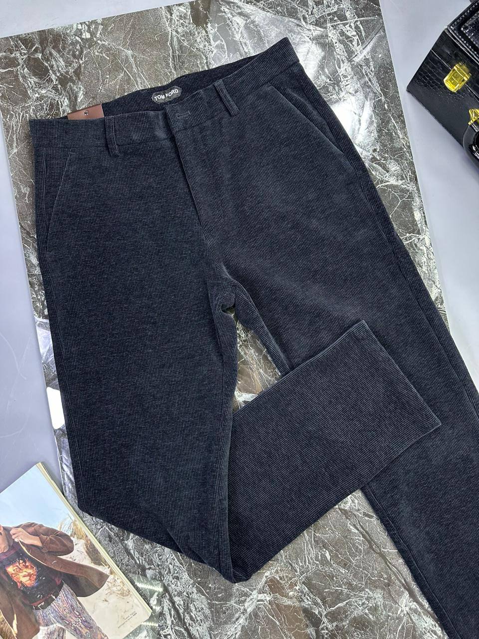 Брюки Tom Ford LUX-97327 – это стильные брюки в классическом стиле. Модель выполнена в темно-сером цвете и имеет вельветовую текстуру. Идеально подходят для создания элегантных и повседневных образов.