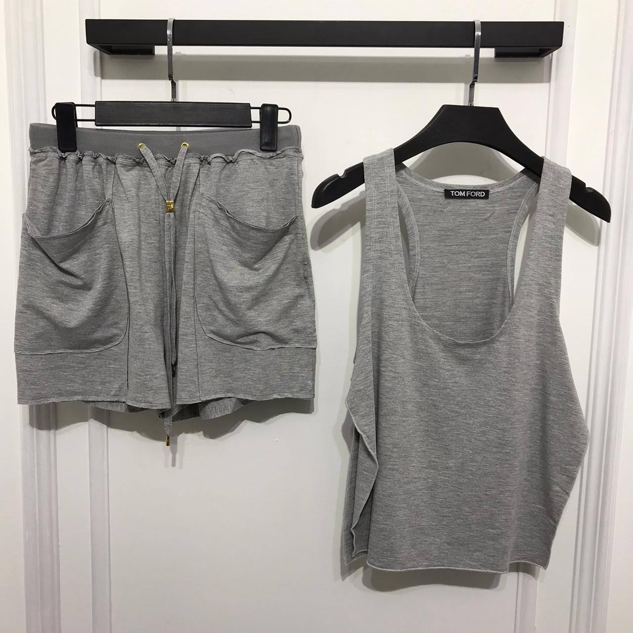 Спортивный костюм Tom Ford LUX-65658 представляет собой стильный и комфортный комплект, состоящий из шорт и майки. Этот элегантный дуэт в спортивном стиле от Tom Ford идеально подходит для создания расслабленных, но изысканных образов.