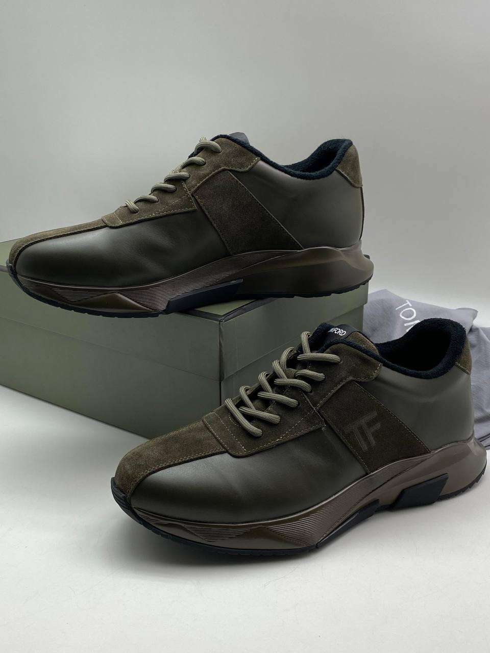 Кроссовки Tom Ford LUX-101484 — это стильная обувь в спортивном стиле. Основной цвет кроссовок – оливковый, что придает им элегантный вид. Их можно использовать как для повседневной носки, так и для создания модных образов.