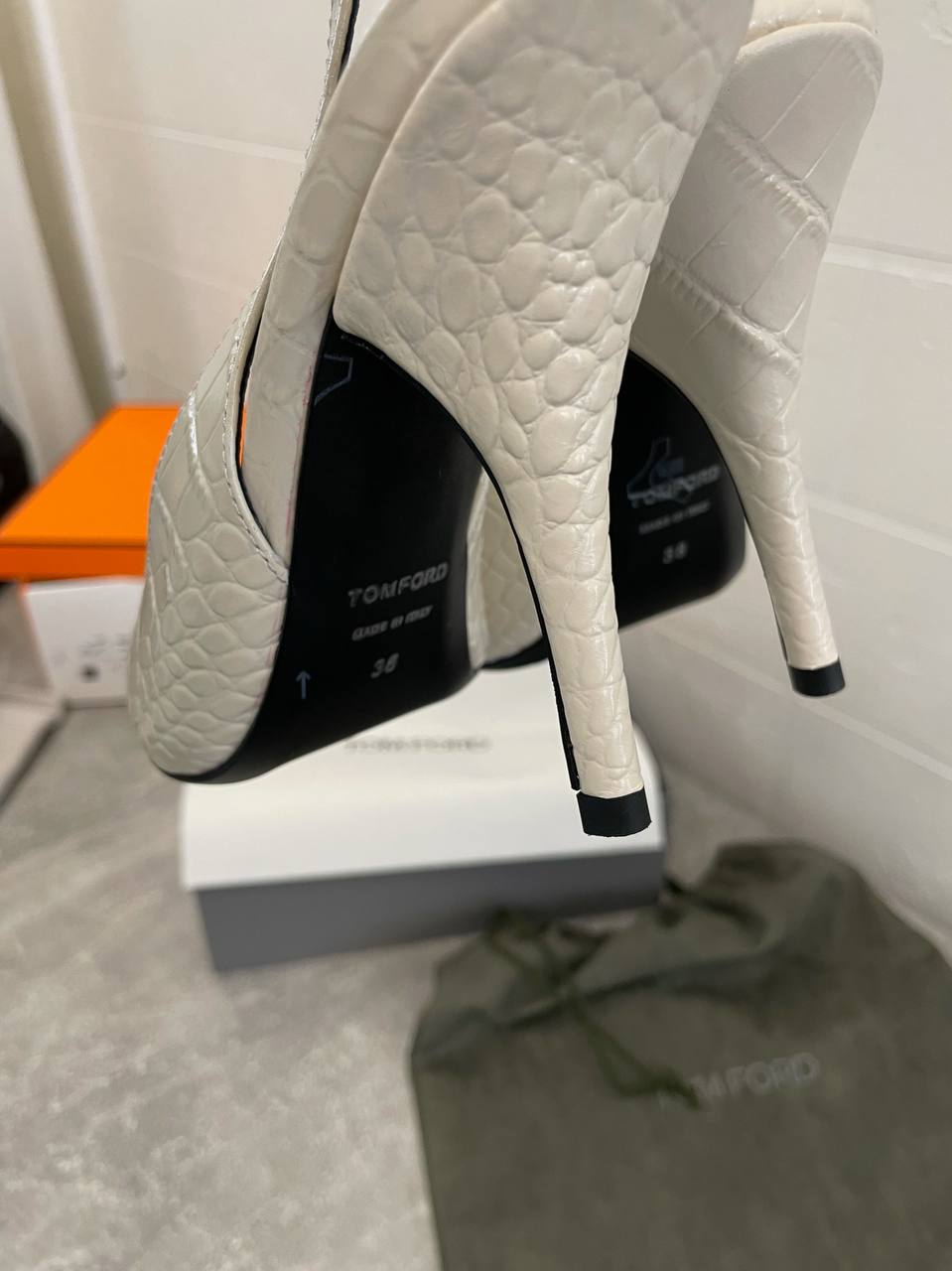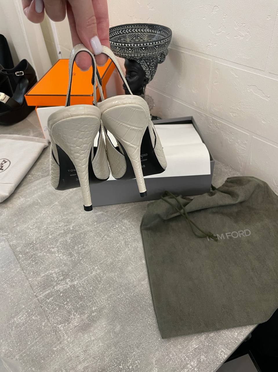 Туфли Tom Ford LUX-102471 — это элегантные туфли-слингбэки в универсальном кремовом цвете. Они выполнены из материала с текстурой под крокодиловую кожу, что придает им роскошный вид. Острый носок и тонкий каблук делают их идеальным выбором для создания утонченного образа.