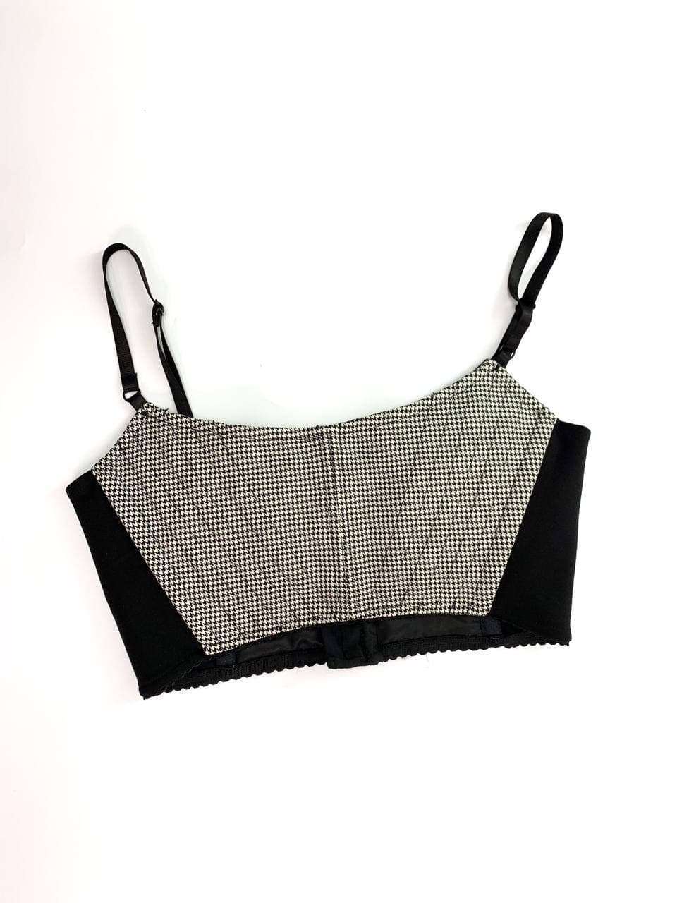 Топ LUX-54431 от бренда LUXE, выполненный в элегантном стиле, идеально дополнит ваш гардероб. Модель сочетает классический принт "гусиная лапка" с однотонными черными вставками, создавая изысканный образ. Этот топ подходит для создания как повседневных, так и более нарядных комплектов, добавляя нотку утонченности.