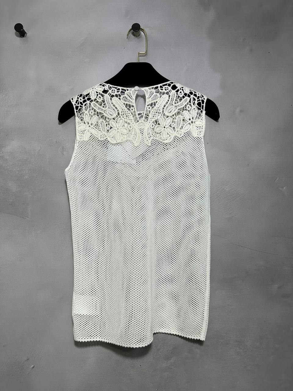 Топ LUX-99045 представляет собой изысканный предмет гардероба, который сочетает в себе элегантность и современность. Топ выполнен в белом цвете с ажурными кружевными вставками, что придает ему воздушный и женственный вид. Этот топ идеально подходит для создания утонченных образов, будь то повседневный наряд или вечерний выход.