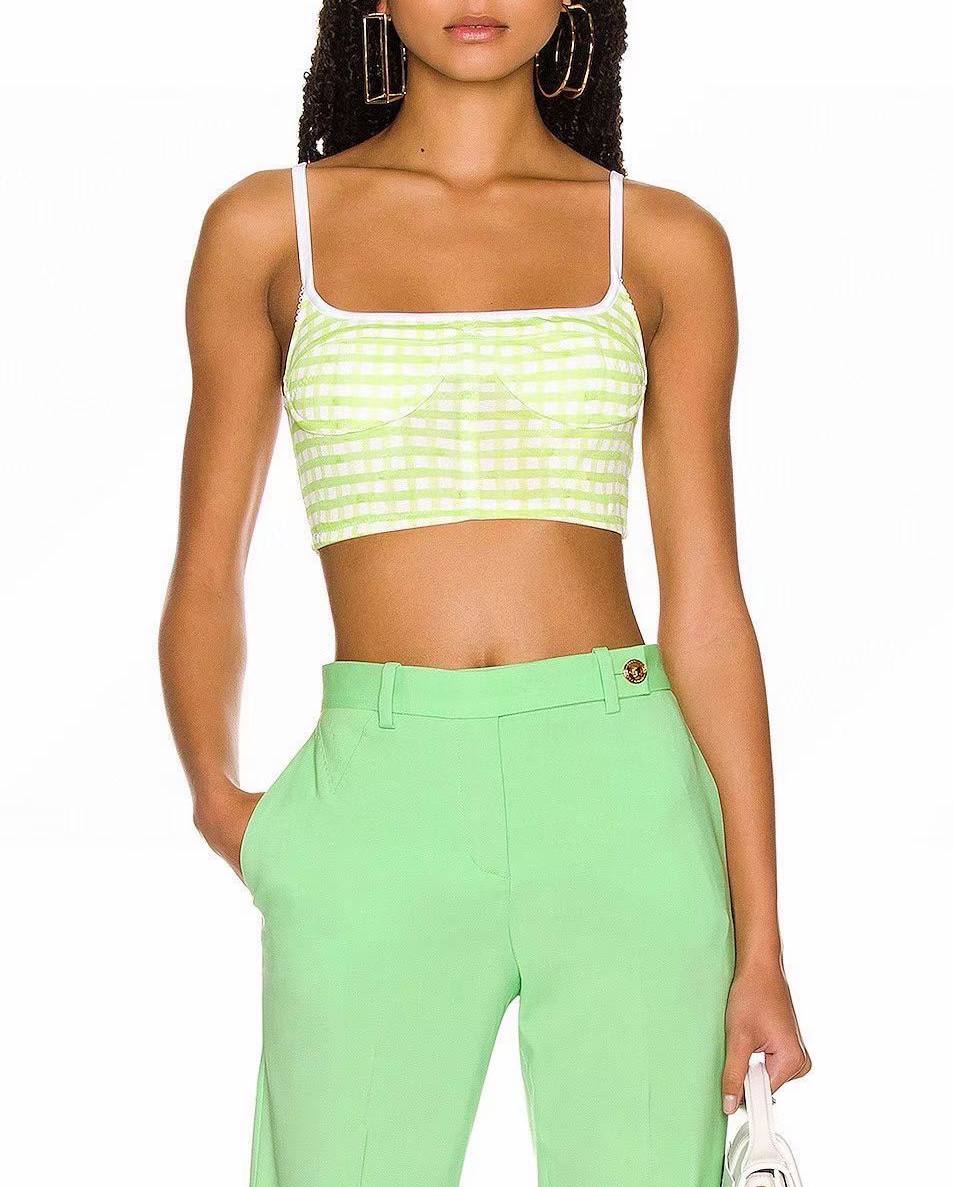 Топ Japanese fabric LUX-69210 от LUXE-CRIME — это стильный женский топ, выполненный в ярком зеленом цвете в клетку. Он идеально подходит для создания легких и модных летних образов. Дизайн топа подчеркивает фигуру, делая его отличным выбором для повседневного ношения или особых случаев.