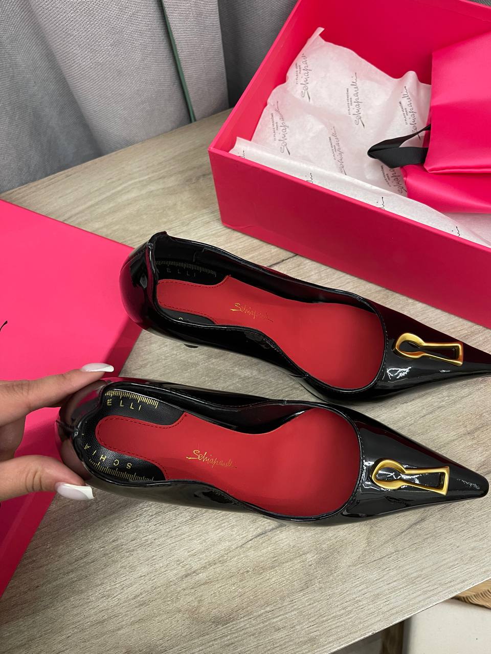 Туфли Schiaparelli LUX-114040 – это элегантные туфли-лодочки на высоком каблуке, выполненные в классическом черном цвете. Они обладают глянцевой лакированной текстурой и заостренным носком, придающим образу изысканность. Эти туфли идеально подойдут для вечерних выходов, торжественных мероприятий или для создания стильного делового образа.