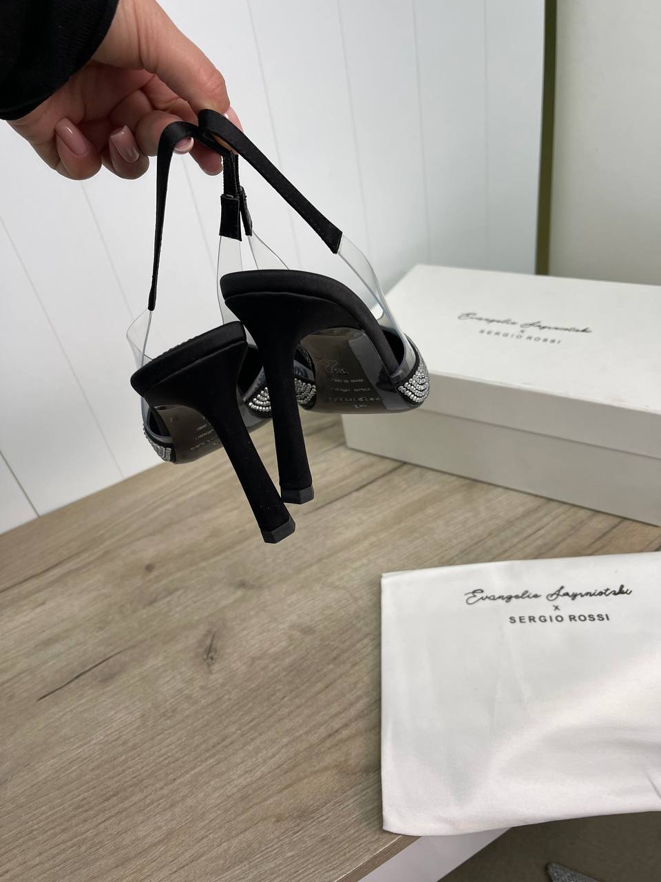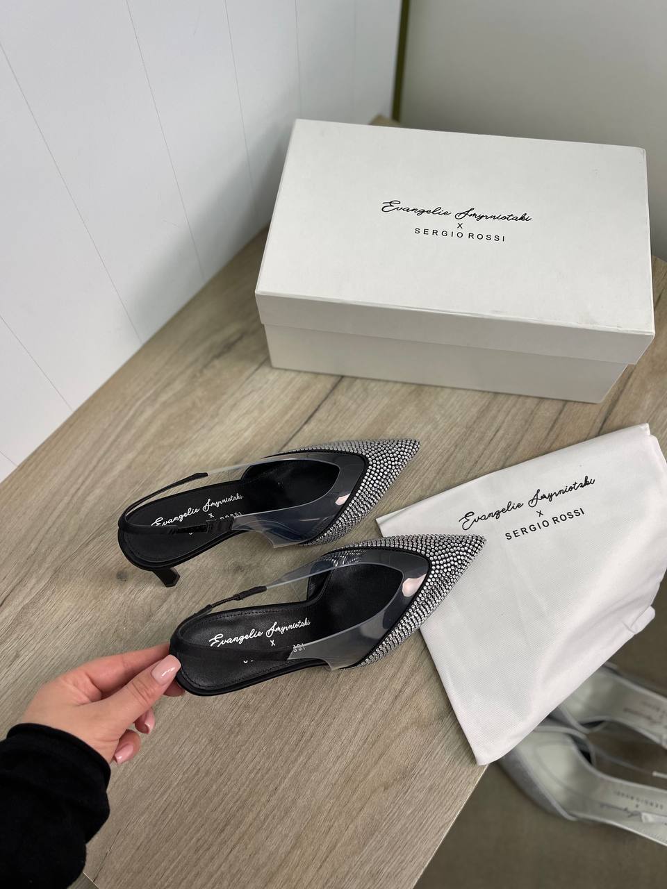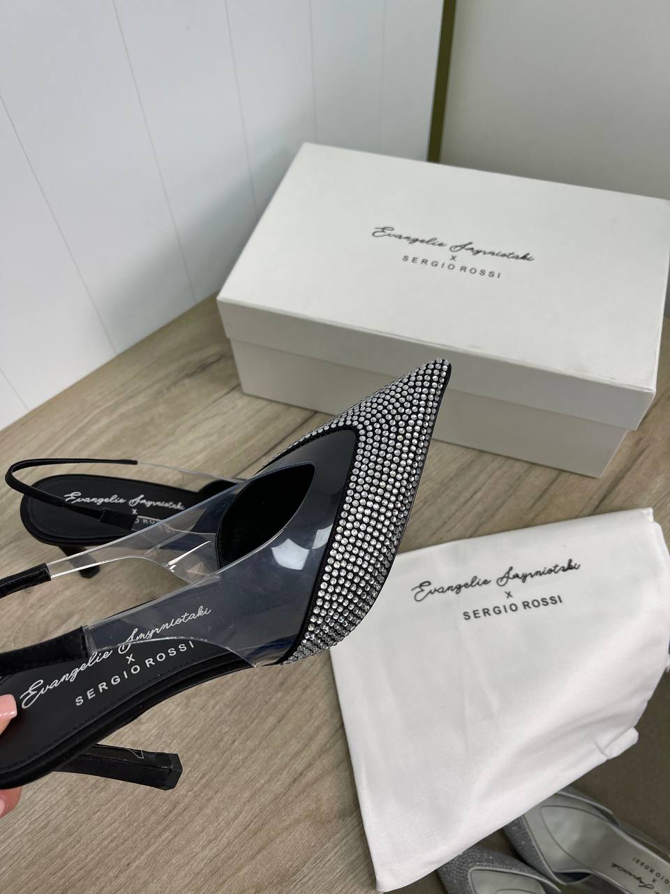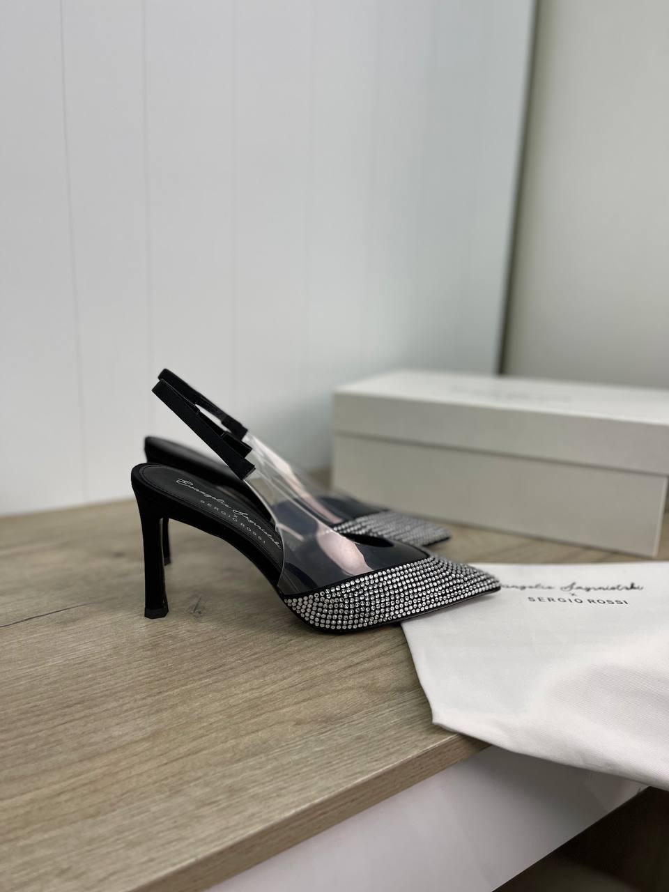Туфли Sergio Rossi LUX-82845 - это элегантные туфли-слингбэки с острым мыском, украшенным стразами. Они выполнены в черном цвете с прозрачными вставками, что придает им современный и изысканный вид. Эти туфли идеально подойдут для особых случаев и вечерних выходов.