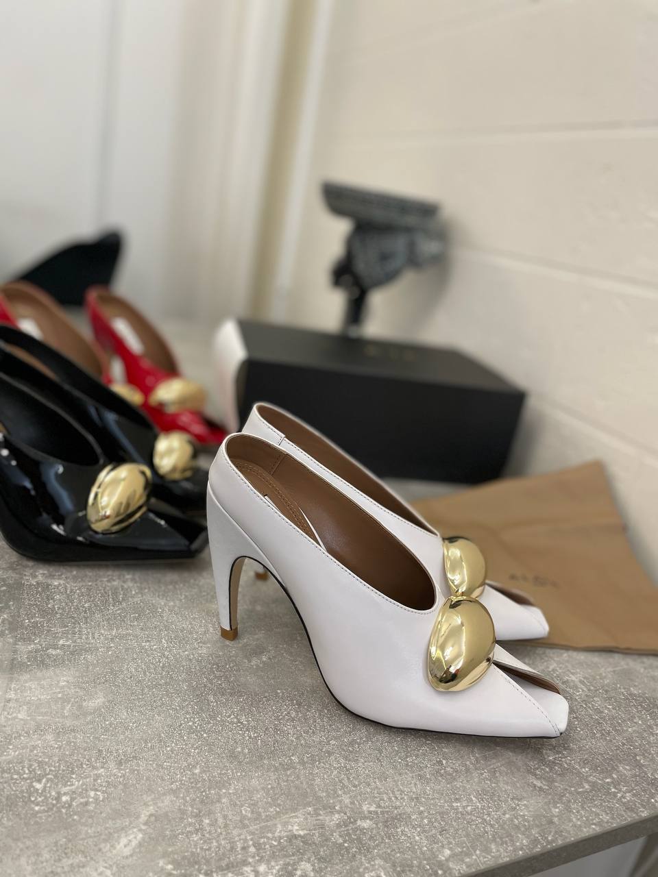 Туфли Alaia LUX-107932 — это элегантная обувь в классическом стиле. Белые туфли с острым мыском украшены крупной золотистой пряжкой. Они идеально подойдут для создания изысканных образов.