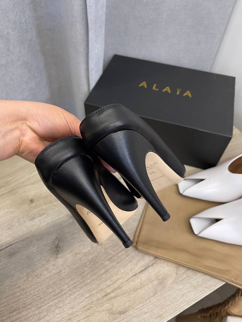 Туфли Alaia LUX-107942 - это элегантная модель на высоком каблуке, выполненная в классическом черном цвете. Туфли имеют минималистичный дизайн с острым носом и открытым участком у подъема, что придает им утонченный и современный вид. Идеально подойдут для создания изысканных образов.