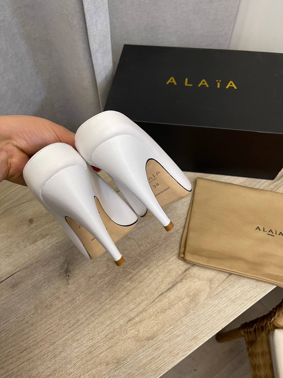 Туфли Alaia LUX-107943 — это элегантная обувь с изысканным дизайном. Белые туфли на высоком каблуке с заостренным носком. Отличный выбор для создания стильного образа.