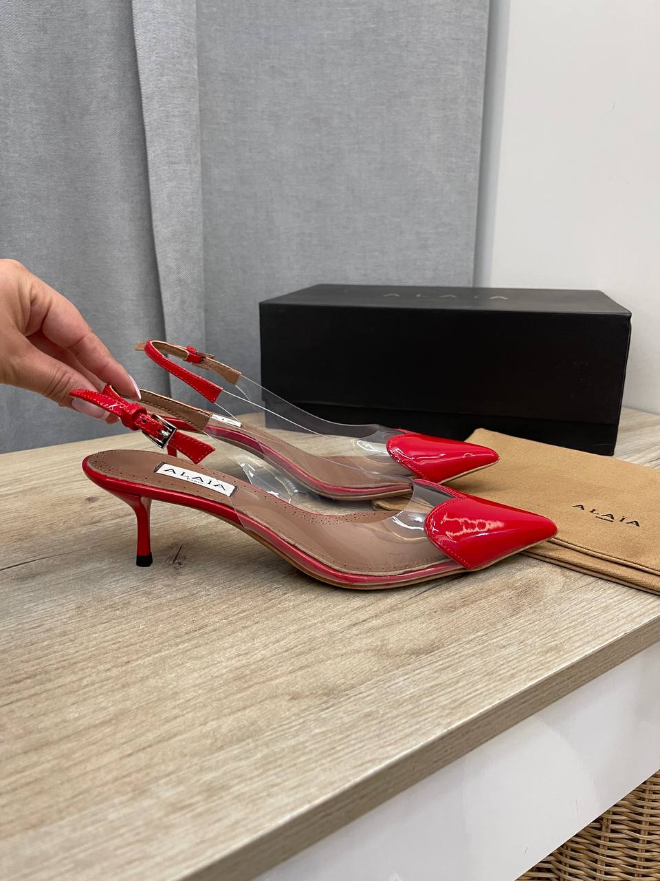 Туфли Alaia LUX-104845 - это воплощение элегантности и современности. Эти туфли на высоком каблуке с острым носком выполнены в ярком красном цвете. Сочетание глянцевых деталей и прозрачного материала делает их идеальным выбором для особых случаев.