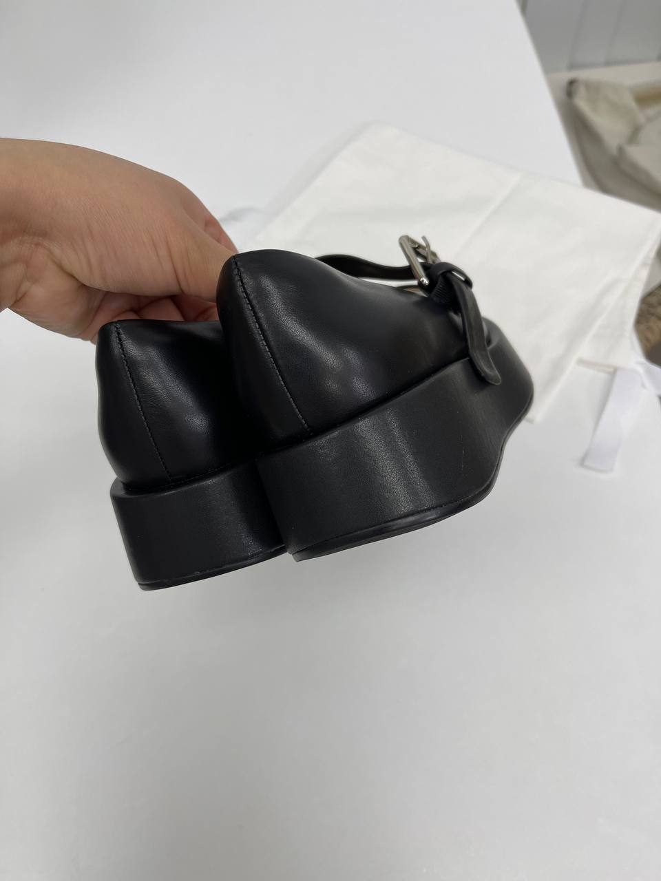 Туфли The Row LUX-90302 - это стильная модель в черном цвете, выполненная в классическом стиле. Туфли имеют ровную текстуру и массивную платформу, что делает их практичным выбором для повседневной носки.
