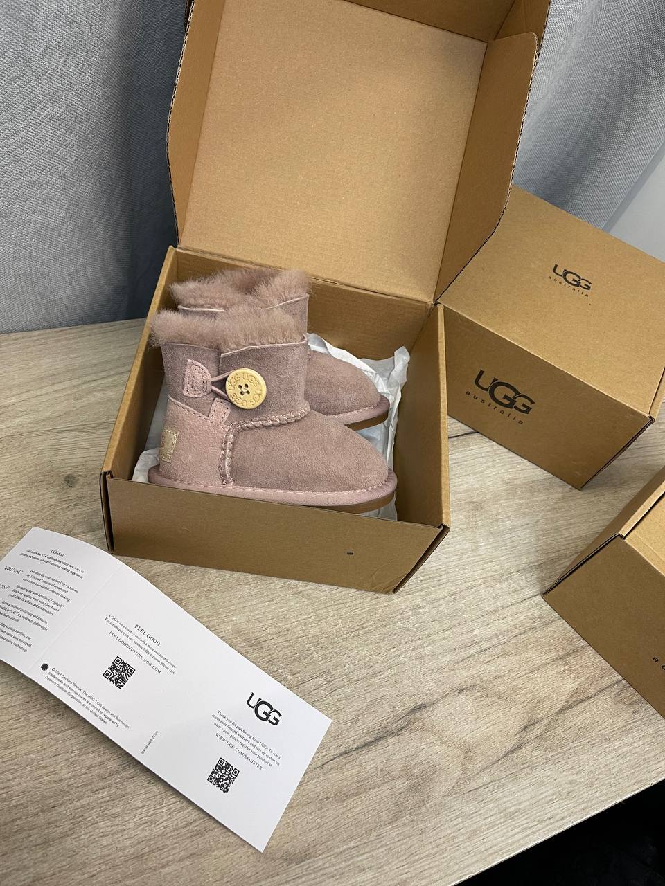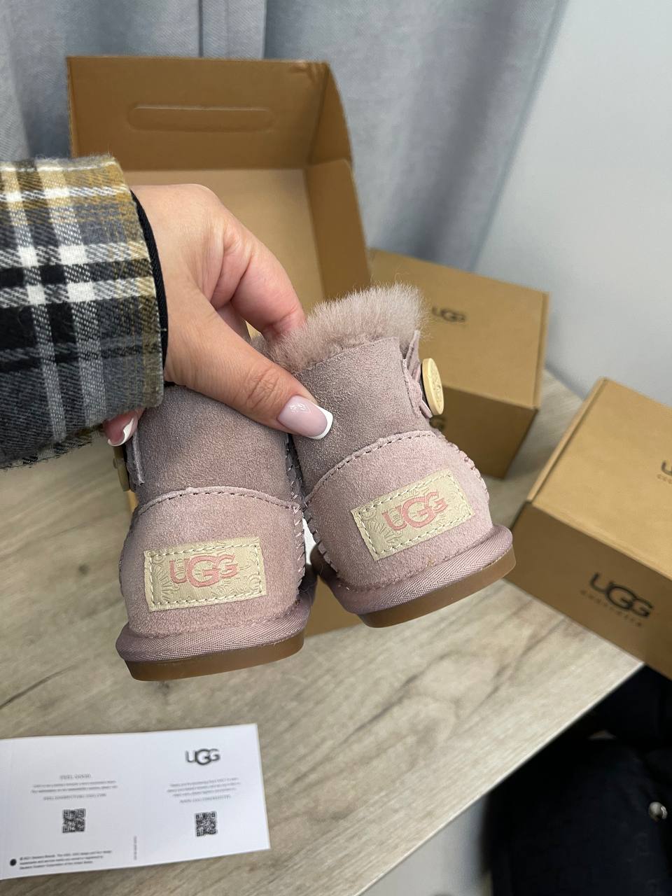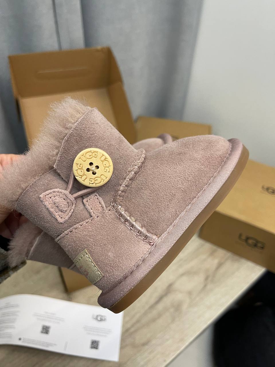 UGG Ugg Australia LUX-111718 – это детские угги в нежно-розовом цвете. Они выполнены в классическом стиле с добавлением пушистой отделки, декоративной пуговицы и ушка на заднике. Данная модель предназначена для повседневной носки в холодное время года, обеспечивая комфорт и тепло.