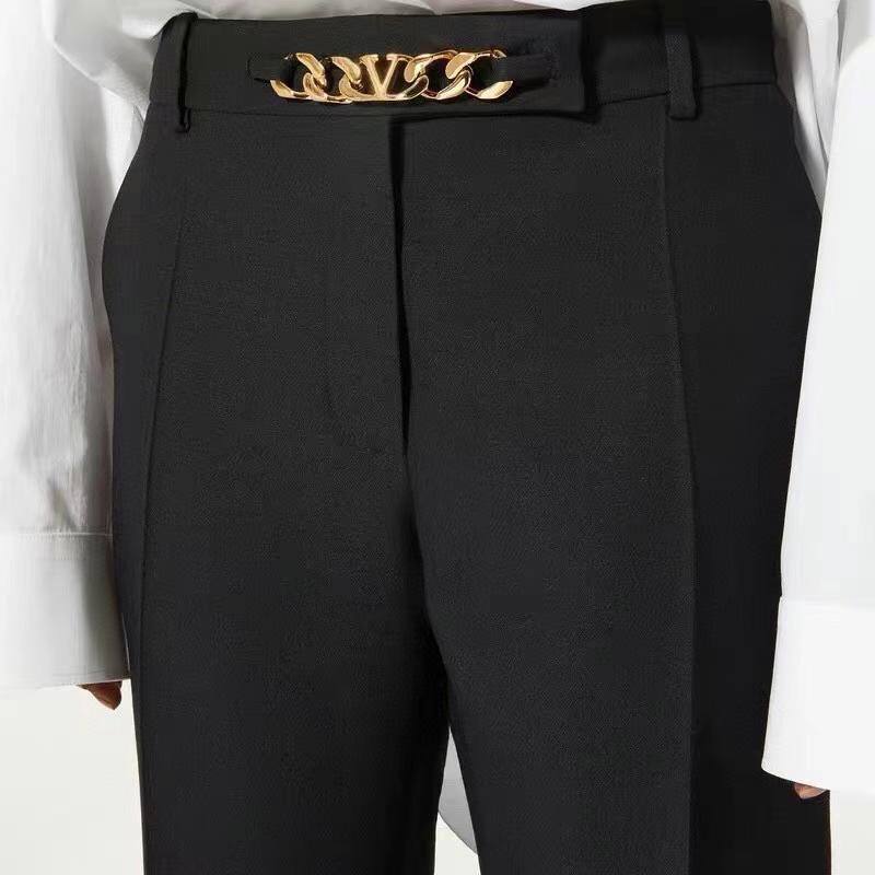 Брюки Valentino LUX-82656 – это стильная классика, которая воплощает элегантность и утонченность. Чёрные брюки прямого кроя с высокой посадкой, дополненные изящным поясом, идеально подходят для создания как деловых, так и вечерних образов.