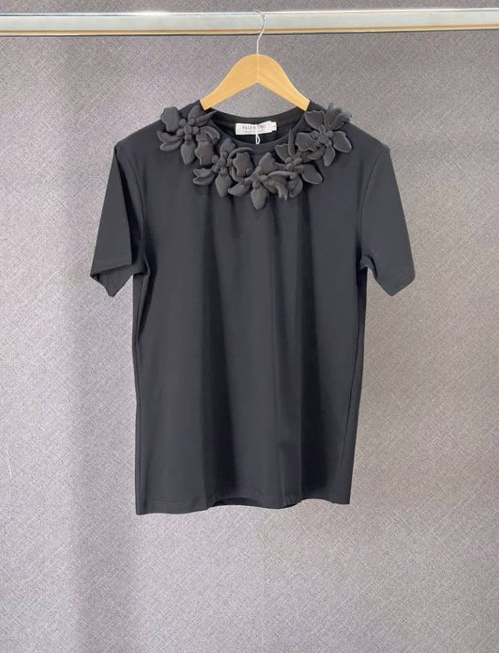 Футболка Valentino LUX-108014 — это элегантное сочетание классики и современной моды. Чёрный цвет и лаконичный дизайн делают её универсальной вещью гардероба. Оригинальным акцентом является декор на горловине.