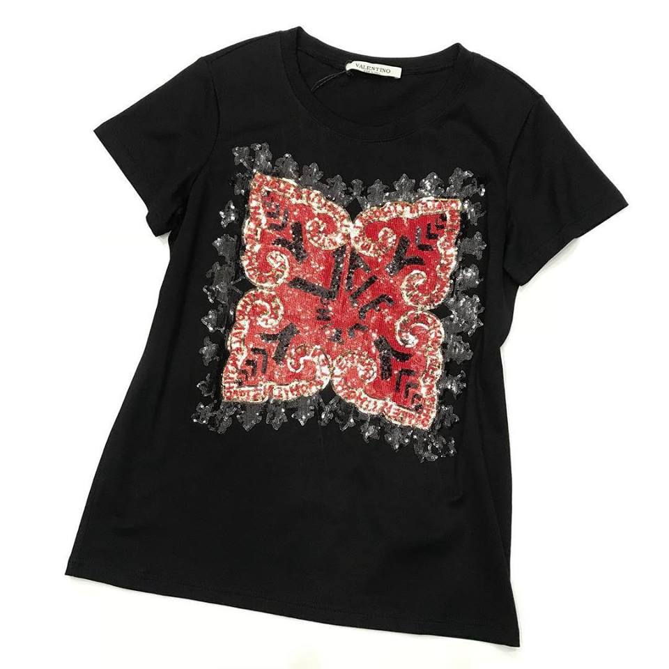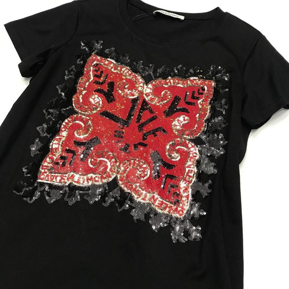 Элегантная черная футболка Valentino АКС-1422 с ярким принтом, украшенным пайетками, добавит изысканности вашему повседневному образу. Модель сочетает в себе классический крой и трендовый дизайн, что делает ее универсальной частью гардероба.