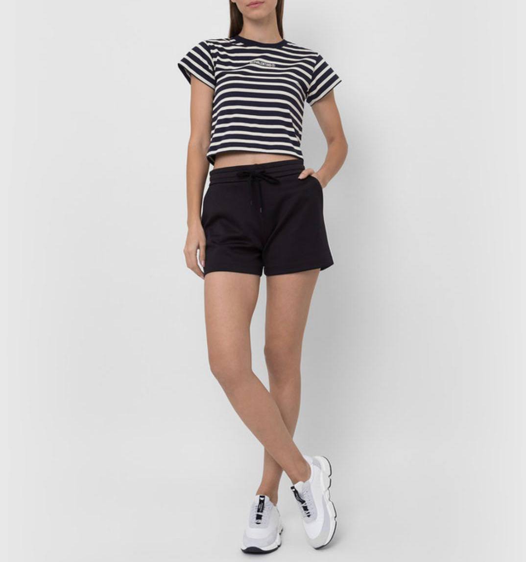 Стильная футболка женская Valentino LUX-66630 выполнена в классическом полосатом дизайне, подчеркивающем спортивный шик. Кроп-топ модель идеально подходит для создания актуальных летних образов. Футболка с коротким рукавом и круглым вырезом горловины обеспечивает комфорт и свободу движений. Этот предмет гардероба станет базой для множества комплектов в стиле casual.