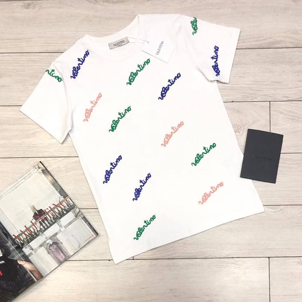 Эта футболка женская Valentino LUX-12444 выполнена в классическом белом цвете и украшена множеством разноцветных вышитых логотипов бренда. Свободный крой и короткие рукава обеспечивают максимальный комфорт, делая ее идеальным выбором для повседневного ношения. Стиль футболки легко вписывается в современные модные тенденции, подчеркивая индивидуальность.