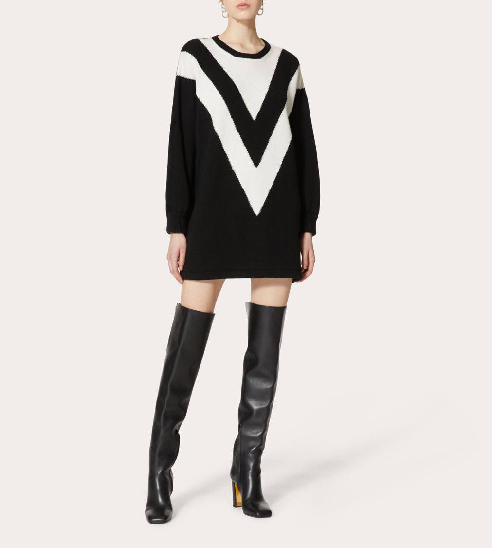Кашемировый свитер Valentino LUX-79529 представляет собой стильный предмет гардероба. Данный свитер, выполненный в чёрном цвете с белыми геометрическими элементами, идеально подойдёт для создания элегантного образа. Его универсальный дизайн позволяет сочетать его с различными элементами одежды.