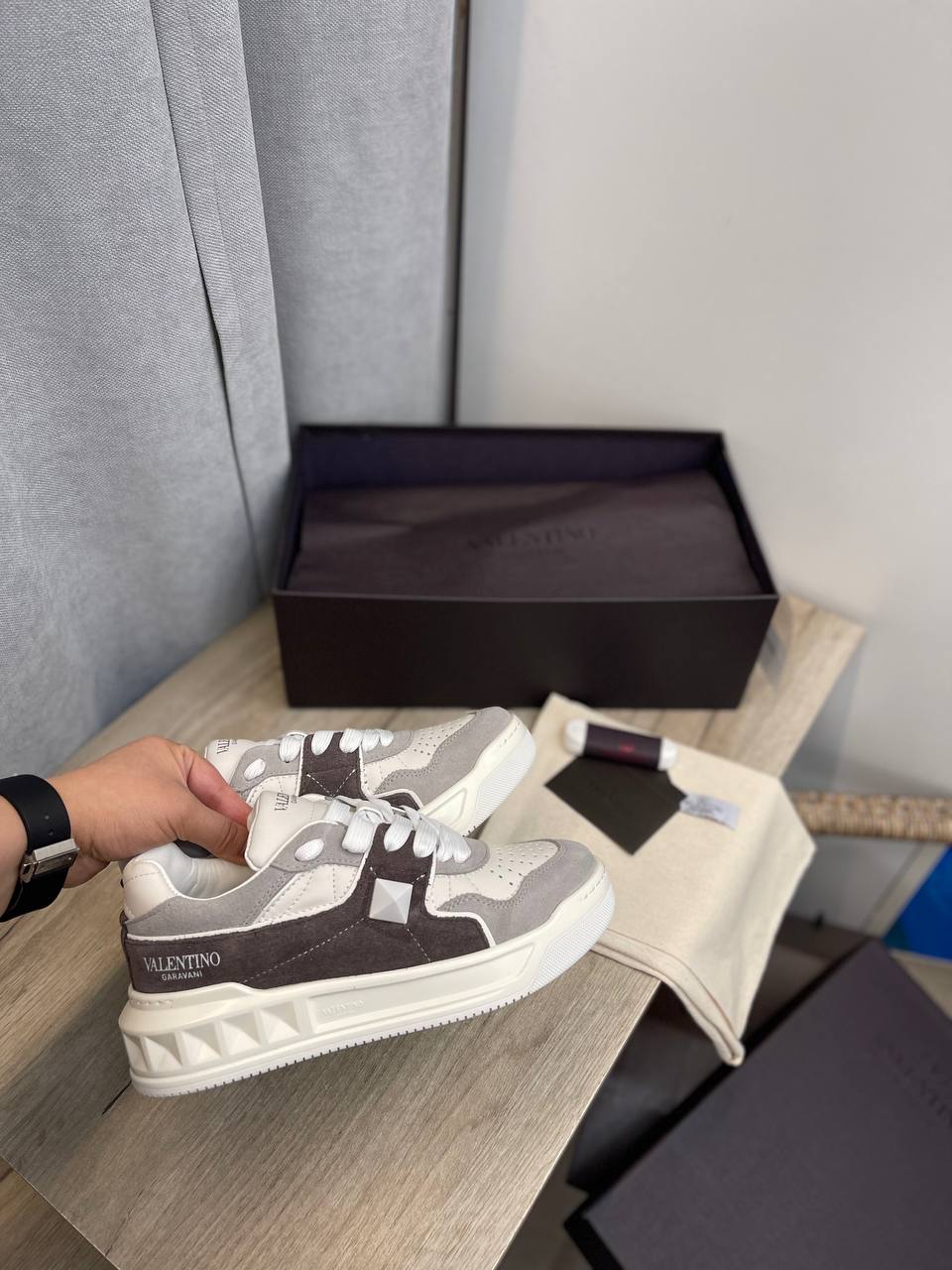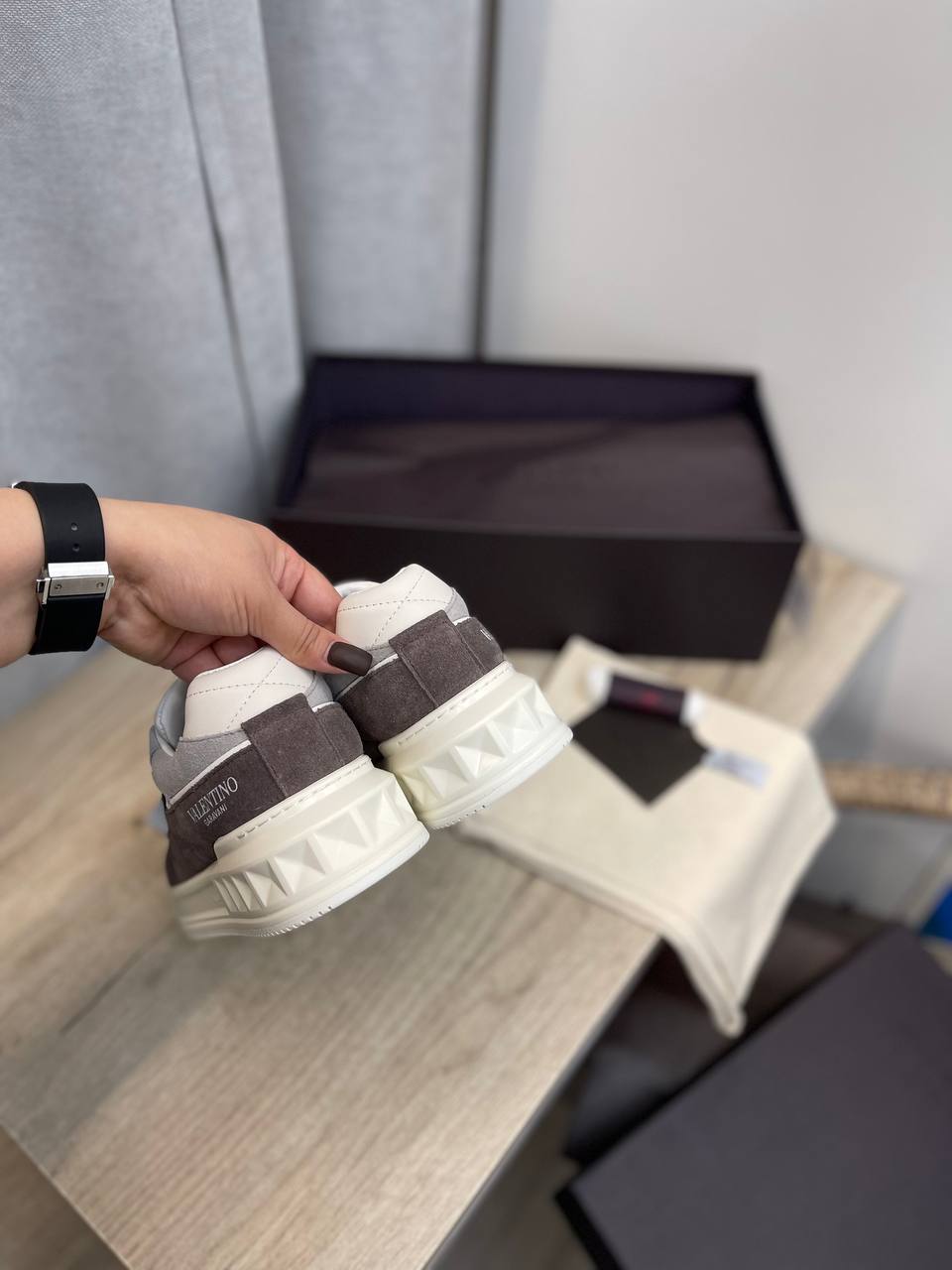 Кеды Valentino LUX-97404 представляют собой стильную и современную обувь, сочетающую в себе элементы спортивного и повседневного стилей. Основной цвет - белый с серыми и темно-коричневыми вставками, что делает их универсальными для различных образов. Эта модель идеально подходит для создания модных и комфортных луков.