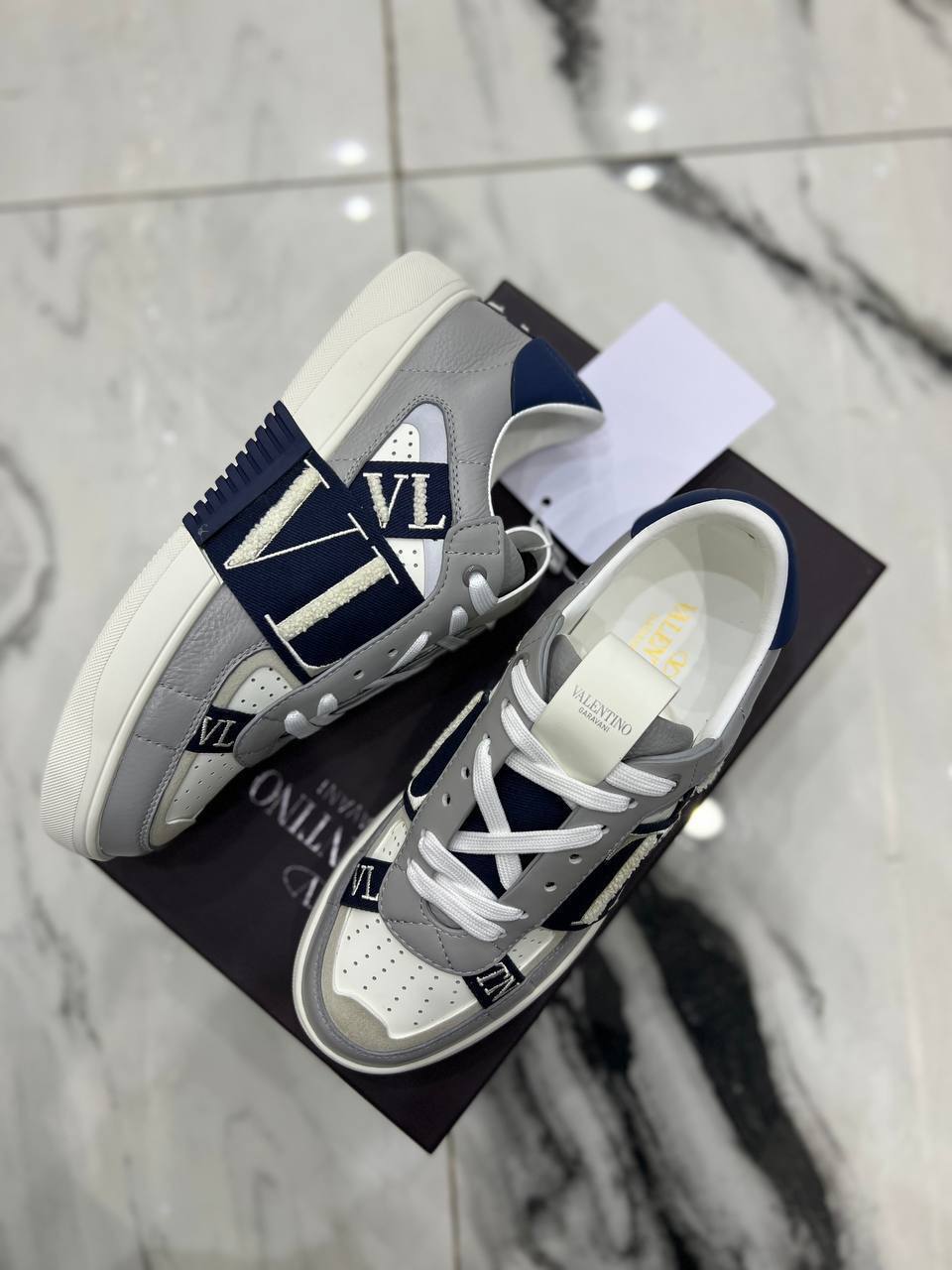 Кеды мужские Valentino LUX-88780 представляют собой стильную и современную обувь. Модель выполнена в сочетании серого, белого и темно-синего цветов, что создает интересный визуальный эффект. Кеды идеально подойдут для повседневной носки, подчеркивая индивидуальность своего обладателя.