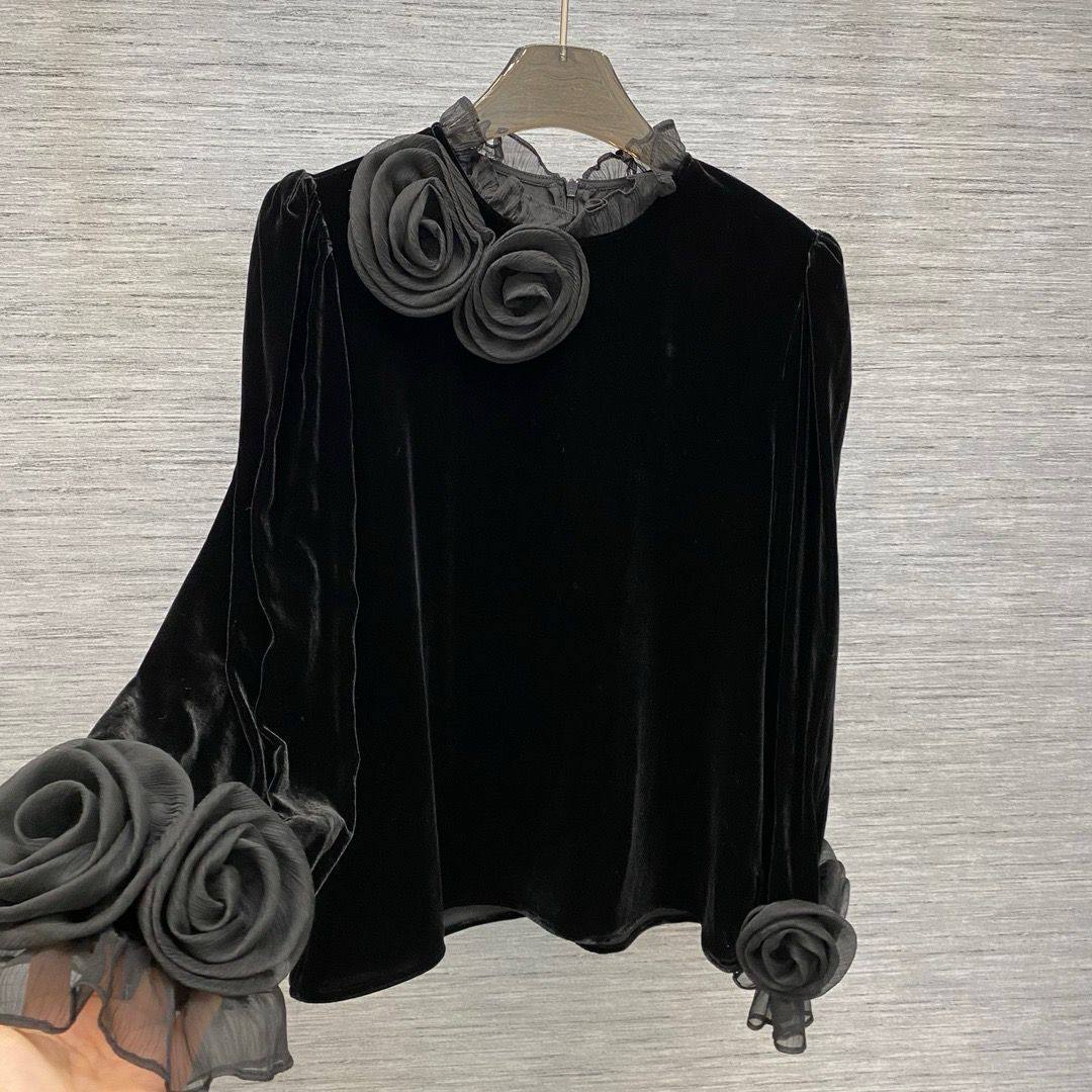 Кофта Valentino LUX-101149 — это элегантный предмет гардероба от известного бренда. Кофта выполнена в классическом черном цвете, имеет длинные рукава и круглый вырез горловины. Декоративные элементы в виде цветов, расположенных на плече и манжетах, придают изделию изысканный вид.