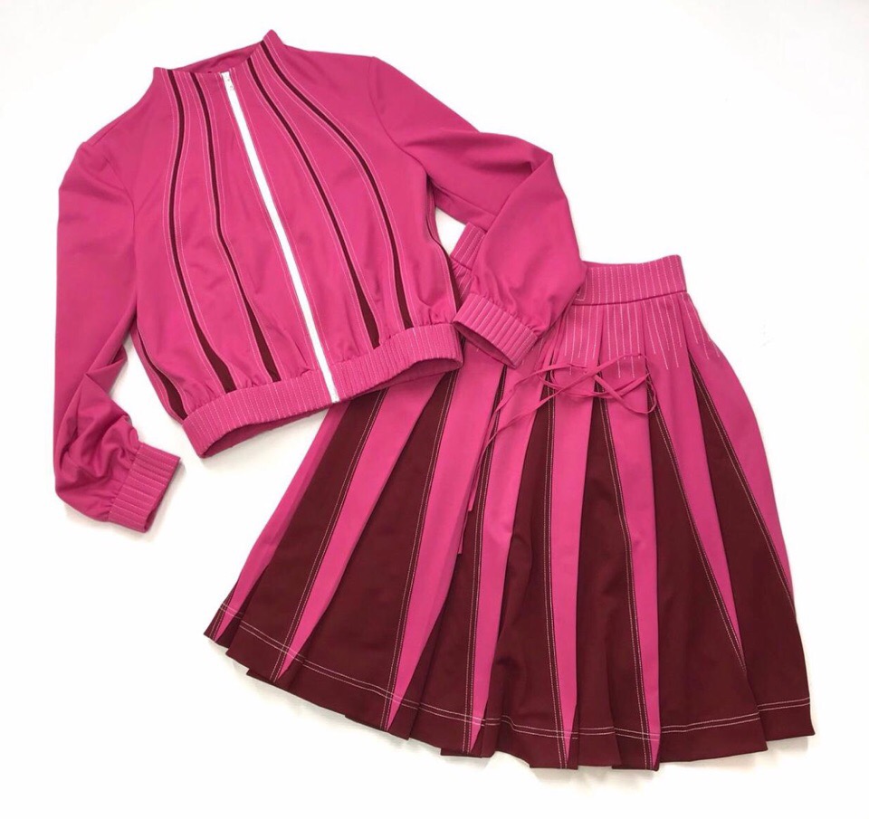 Valentino Костюм женский юбочный ОДЖ-426 представляет собой стильный и оригинальный комплект, состоящий из укороченной куртки-бомбера и плиссированной юбки. Яркая розовая расцветка с контрастными бордовыми вставками и вертикальными линиями создает динамичный образ. Куртка застегивается на молнию, имеет эластичные манжеты и низ, обеспечивая комфортную посадку. Юбка украшена бантовыми складками и дополнена изящным поясом-завязкой. Этот костюм идеально подойдет для создания эффектных повседневных и спортивных образов.
