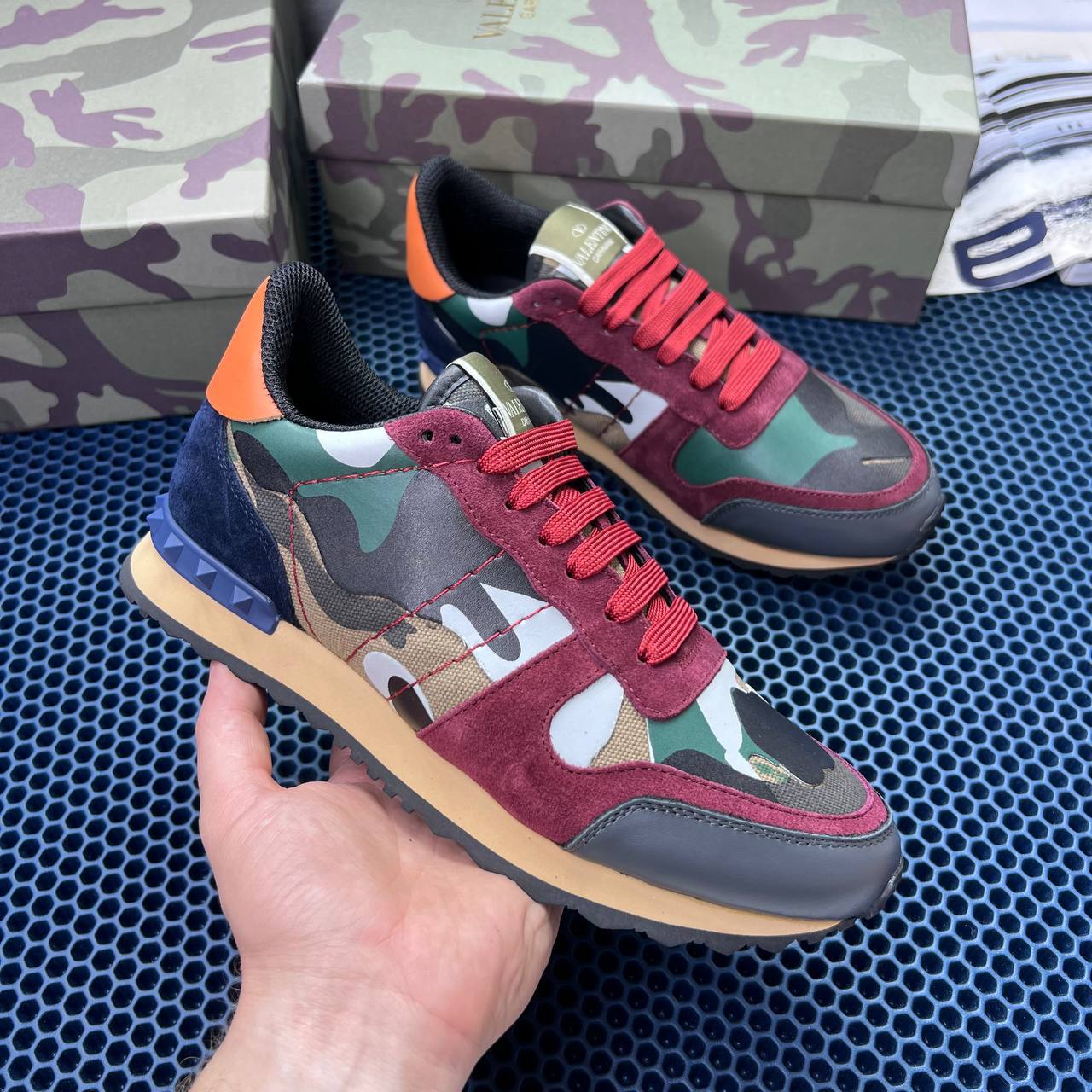 Кроссовки Valentino LUX-73559 представляют собой яркий пример спортивной обуви в стиле casual. Кроссовки сочетают в себе камуфляжный принт, бордовые и синие элементы, создавая уникальный и запоминающийся образ. Эта модель, благодаря своей цветовой гамме и дизайну, идеально подходит для тех, кто хочет выделиться из толпы.