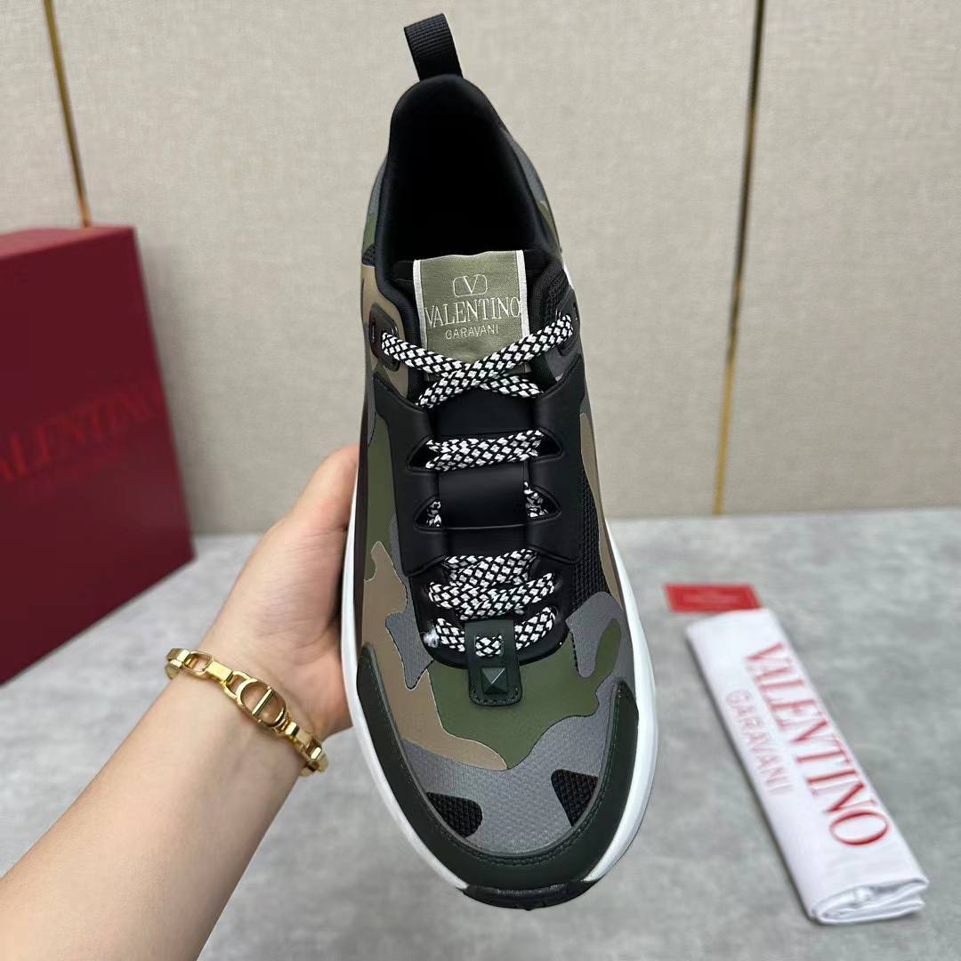 Кроссовки Valentino LUX-110898 - это стильная обувь, сочетающая в себе современный дизайн и комфорт. Кроссовки выполнены в камуфляжной расцветке с преобладанием зеленых и черных оттенков. Идеально подойдут для создания повседневных образов.