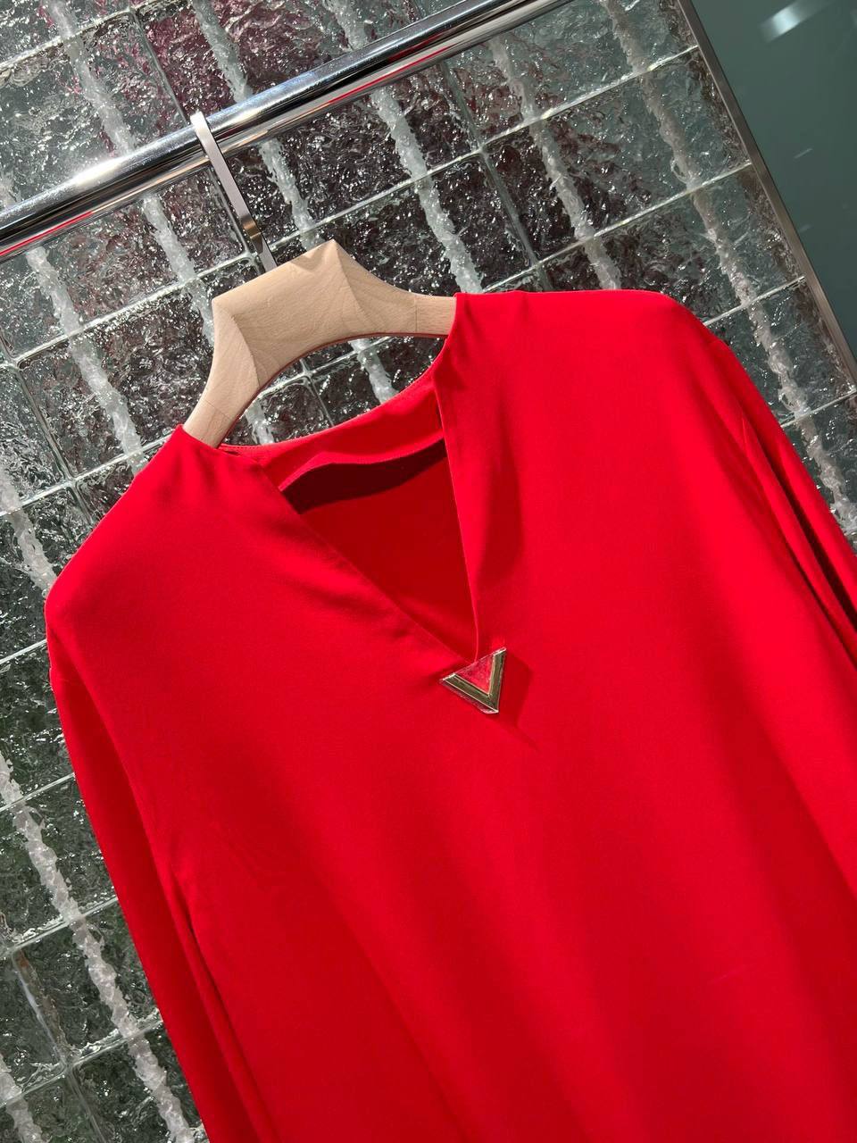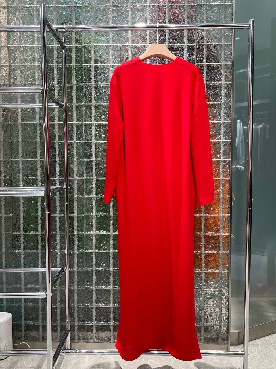 Платье Valentino LUX-100367 - это элегантное платье-макси яркого красного цвета. Платье выполнено в минималистичном стиле, с длинными рукавами и разрезами по бокам, что придает ему современный вид. На груди имеется небольшая декоративная деталь. Идеально подходит для создания стильного и эффектного образа.