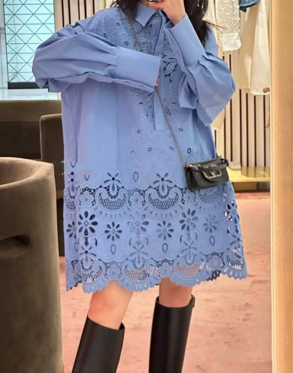 Платье Valentino LUX-106654 представляет собой изысканное платье рубашечного кроя небесно-голубого цвета с ажурным подолом и рукавами. Оно сочетает в себе классический крой с элементами романтичного декора, создавая утонченный образ. Платье подходит для различных случаев, от повседневных прогулок до вечерних мероприятий.