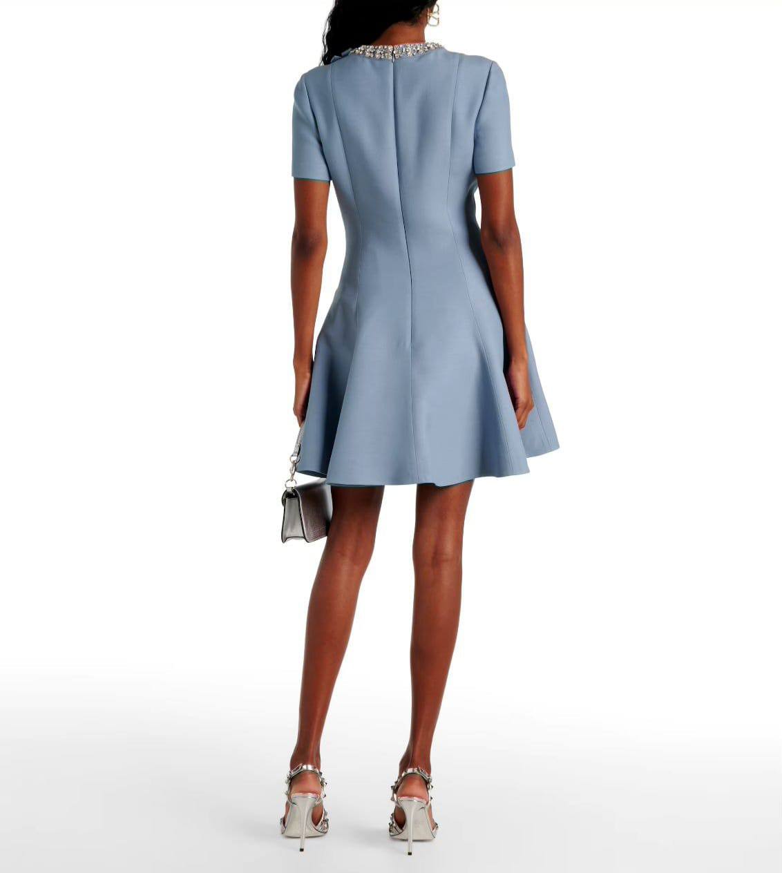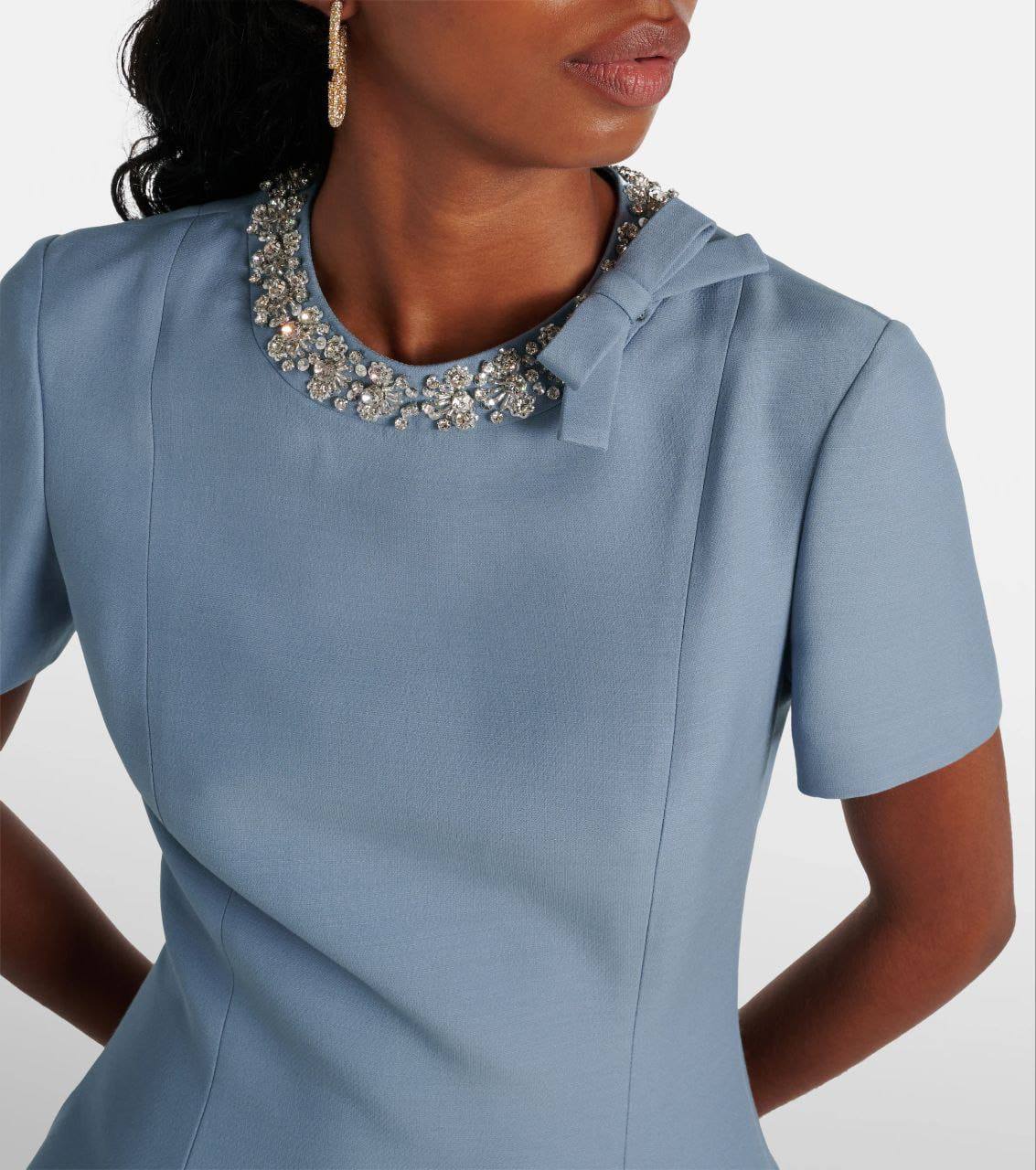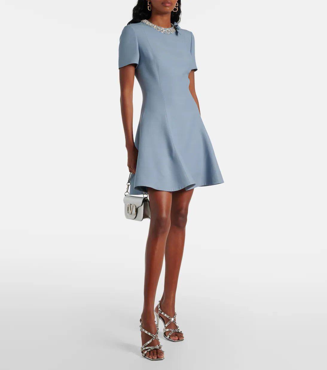 Платье Valentino LUX-109908 - это воплощение элегантности и стиля. Нежно-голубое платье с короткими рукавами и расклешенным низом создает женственный силуэт. Декоративный элемент в области шеи добавляет изысканности и подчеркивает неповторимый дизайн.