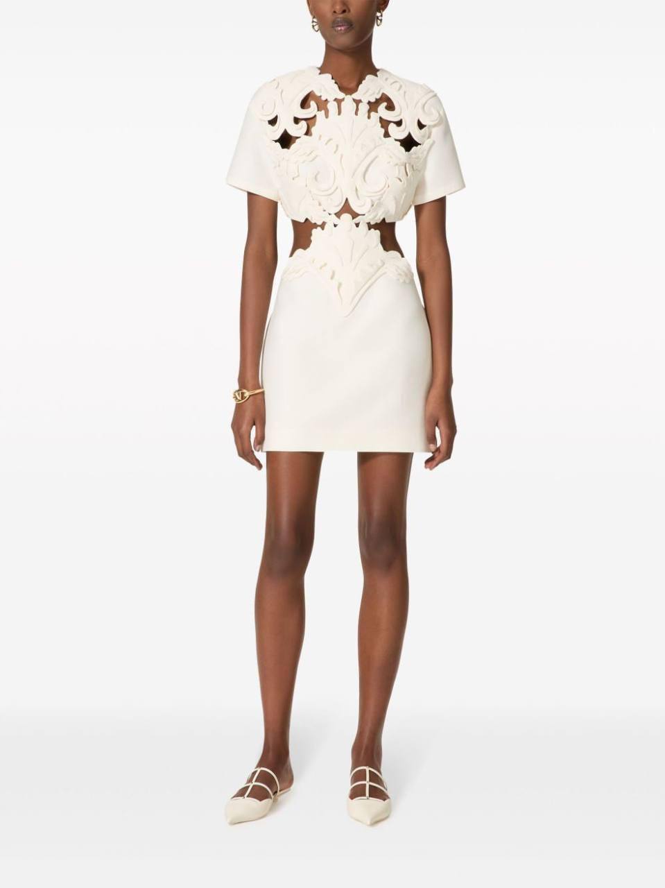 Платье Valentino LUX-111682 — это изысканное мини-платье молочного цвета, которое сочетает в себе элегантность и современный дизайн. Платье выполнено в минималистичном стиле с акцентными деталями, такими как вырезы и декоративные элементы на плечах, создающие уникальный и запоминающийся образ. Этот наряд станет отличным выбором для различных мероприятий, от коктейльных вечеринок до особых случаев.